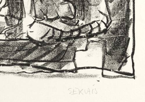 1969. Lithografie / Kreidelithografie, in Schwarz, auf hellgelbem Weißenborn-Bütten. – Originale Künstlergrafik, von Roger David Servais. – Auflage 85 Exemplare. – 37,2 x 29,2 cm (Darstellung / Druckbild), 50 x 38 cm (Blatt).
