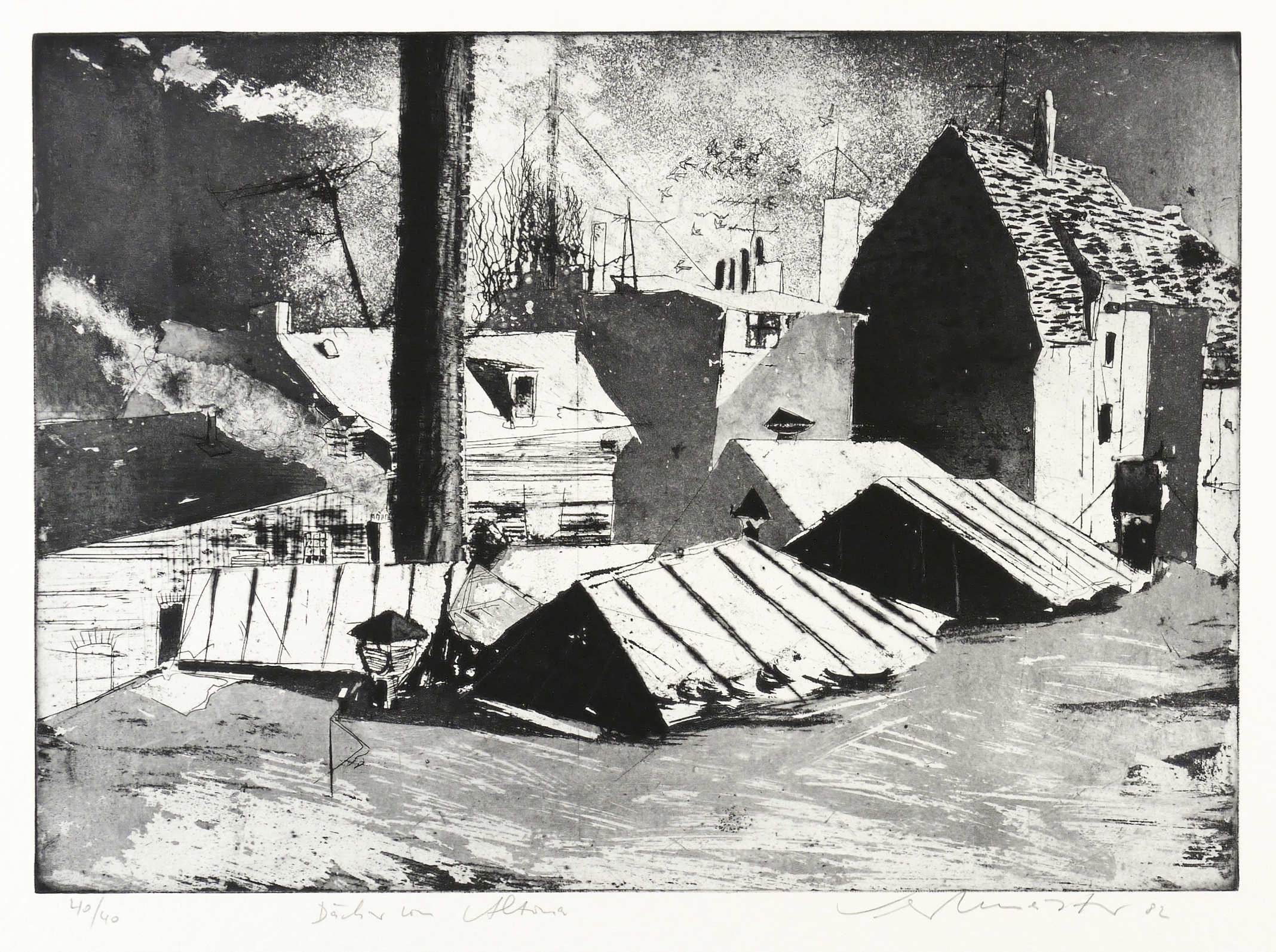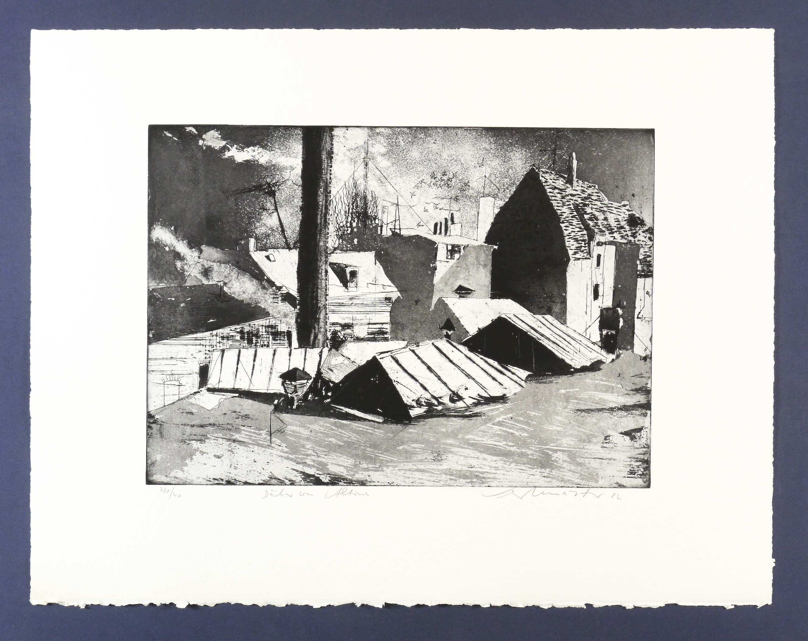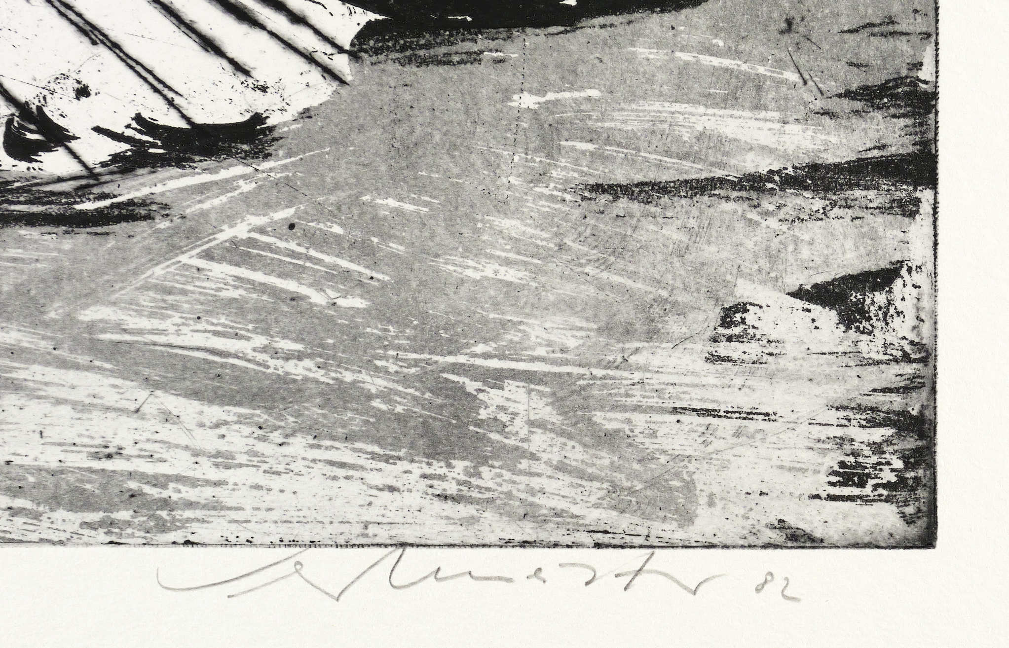 1982. Radierung / Aquatinta & Strichätzung, partiell poliert, in Schwarz, auf Moulin-du-Gué-Bütten. – Von Wolfgang Werkmeister. – Auflage Exemplar Nr. 40/40. – 31,3 x 44,0 cm (Darstellung / Platte), 50 x 65 cm (Blatt).