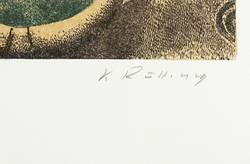 Karl Rössing (1897 Gmunden - 1987 Wels). Österreichischer Grafiker und Buchillustrator, namhafter Vertreter des Surrealismus und der Neuen Sachlichkeit. 1913-17 Studium an der Königlichen Kunstgewerbeschule in München bei Richard Riemerschmid und Fritz Helmuth Ehmcke. Ab 1915 Illustrationen in der Technik des Holzstichs. 1919 Teilnahme an der Münchner Sezession und Bekanntschaft mit Rainer Maria Rilke. 1921 Berufung an die Volkwangschule nach Essen. Ab 1926 Professor für Buchgewerbe und Grafik. Ab Mitte der 1920er Jahre verstärkt Malerei. 1925 Teilnahme an der Ausstellung "Neue Sachlichkeit" in Mannheim. 1930 erste Italienreise. 1934 Dozent für Malerei und Zeichnen an der Staatlichen Hochschule für Kunsterziehung in Berlin, ab 1939 Professor auf Lebenszeit. Bei einem Bombenangriff 1944 wurden zahlreiche Werke zerstört. Seine Kriegstraumata verarbeitete er u.a. in Briefen an Alfred Kubin. Ab 1947-60 an der Staatlichen Akademie der Bildenden Künste in Stuttgart, ebenda Professor auf Lebenszeit, 1953-55 Rektor, 1955-57 Prorektor.