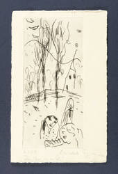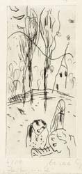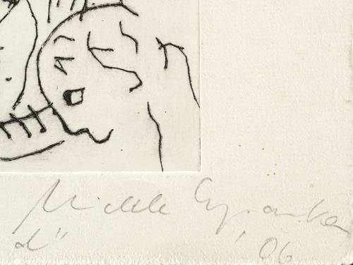 2006. Radierung / Strichätzung, in Schwarz, auf hellchamois Büttenpapier. – Von Michele Cyranka. – Auflage Exemplar Nr. 6/18. – 21,4 x 9,9 cm (Darstellung / Platte), 25 x 15,5 cm (Blatt).
