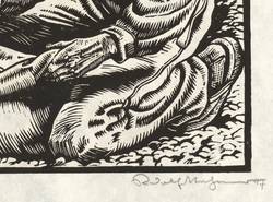 1947. Holzschnitt, in Schwarz, auf rauem weißlichem Japanbütten. – Originale Künstlergrafik, von Rudolf Nehmer. – 19,8 x 17,5 cm (Darstellung / Druckstock), 41 x 28 cm (Blatt).
