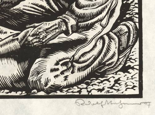 Rechts unten in Bleistift signiert und datiert. – Blatt aus der bekannten Holzschnitt-Folge ″Bauern″. – Sehr gutes Exemplar. Tadellos erhalten.