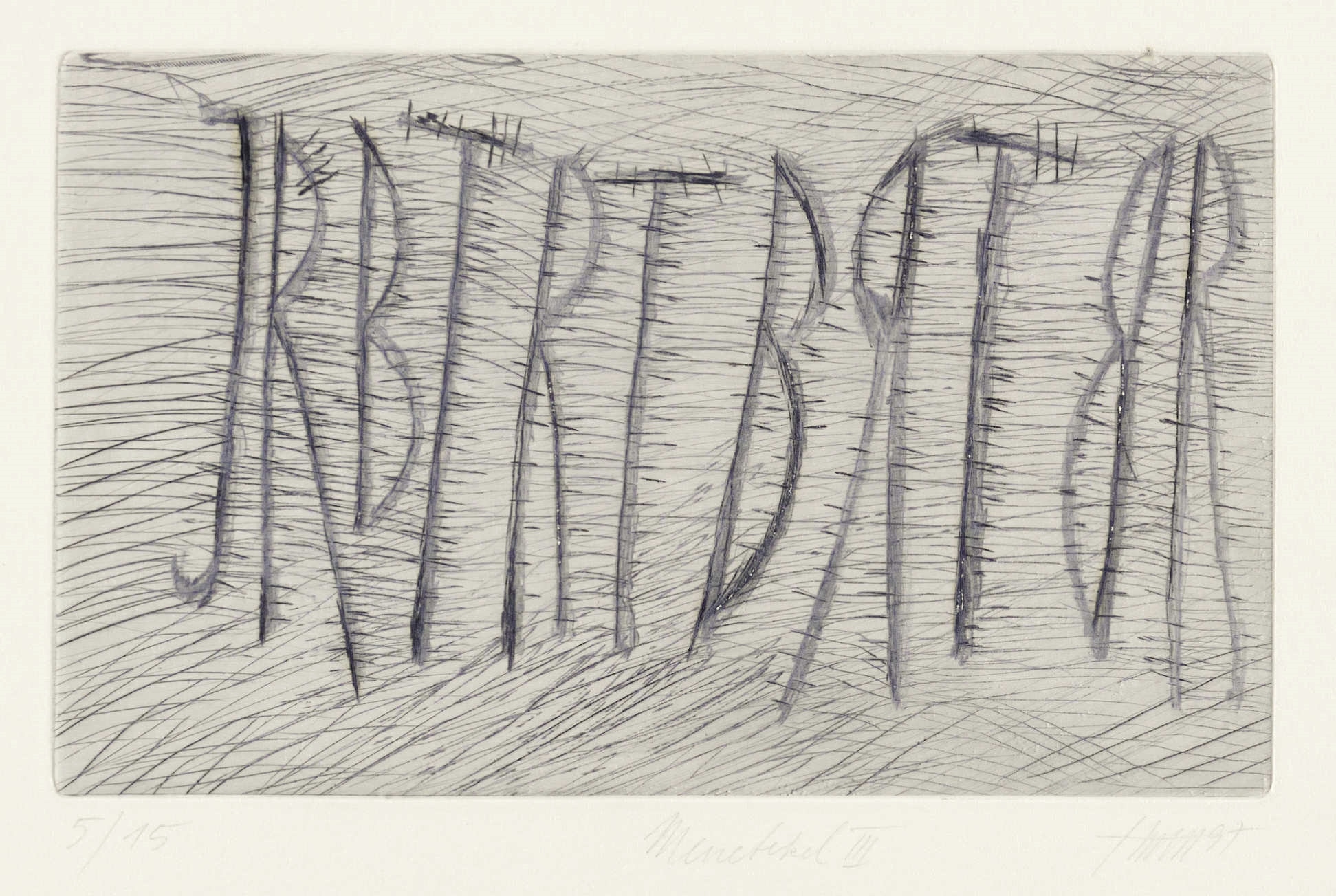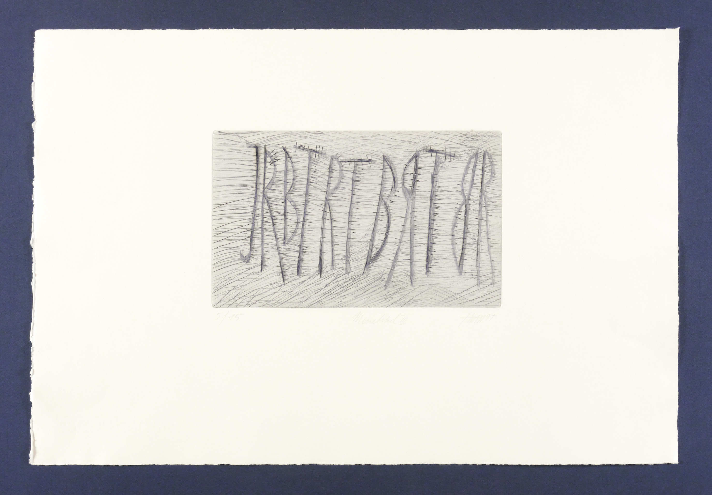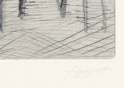 1997. Farbradierung / Aquatinta & Strichätzung, in Grauviolett & Schwarz, auf hellchamois Hahnemühle-Bütten. – Von Deutsch (20. Jh.). – Auflage Exemplar Nr. 5/15. – 16,7 x 27,1 cm (Darstellung / Platte), 41 x 60 cm (Blatt).