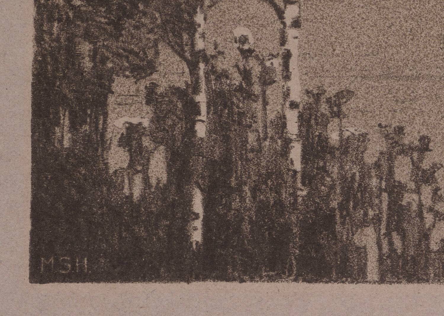 Nicht handsigniert. Im Stein links unten Monogramm: ″M.S.H.″ – Sehr guter Zustand.