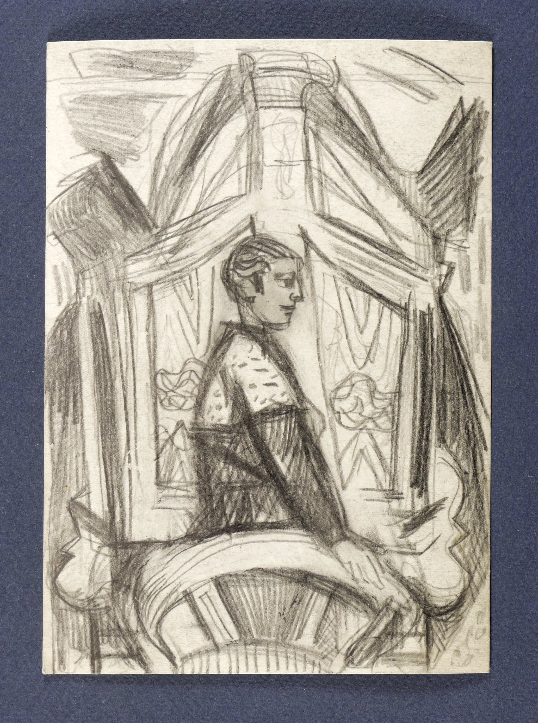 1960-1970. Zeichnung / Graphitzeichnung, auf Karton. – Originale Künstlergrafik, von Joachim Heuer. – Unikat. – 18,1 x 12,8 cm (Darstellung / Blatt).