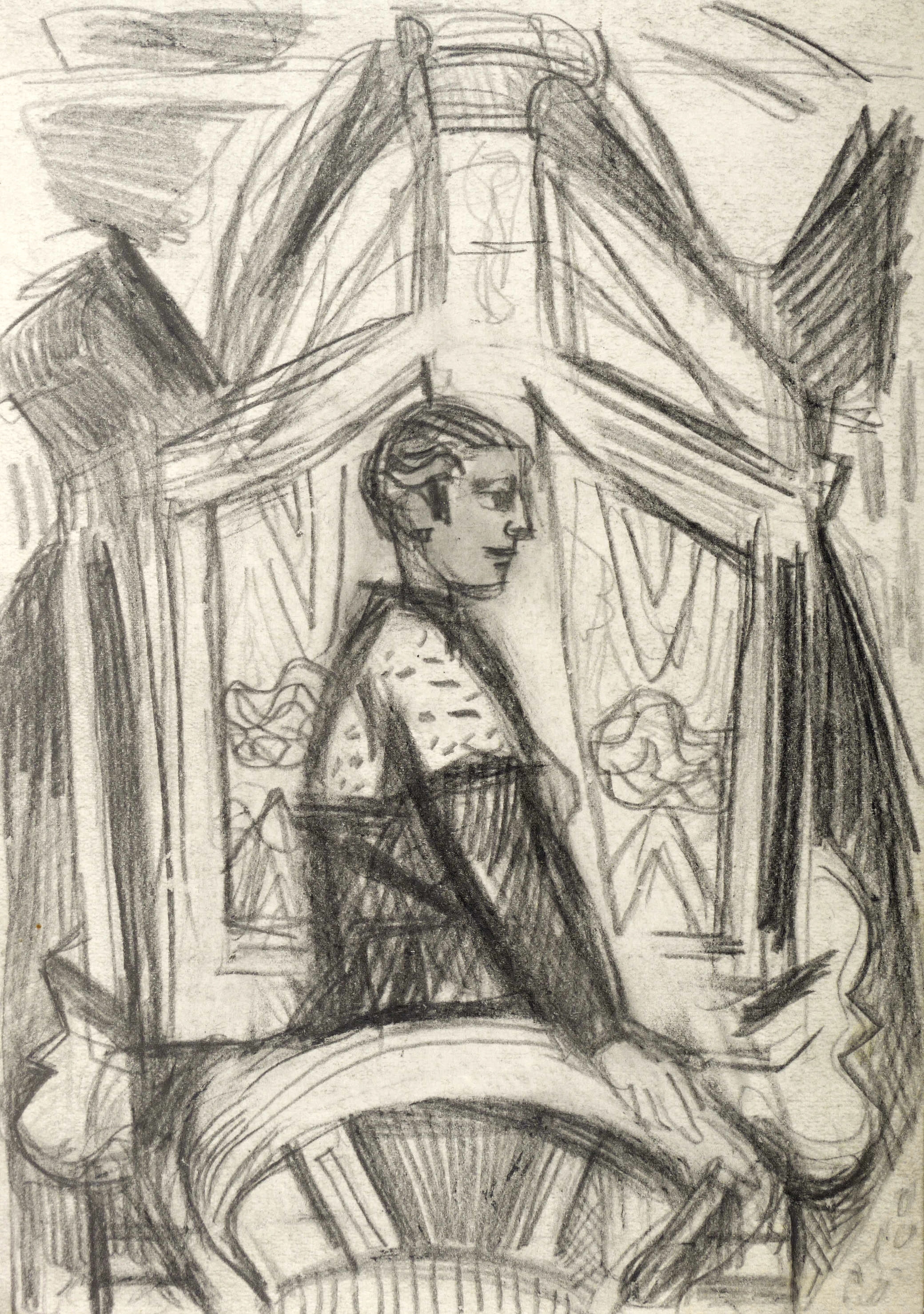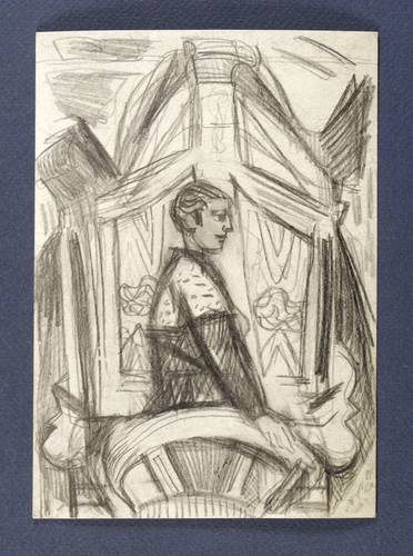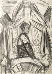 Heuer, Joachim. – „Frauenprofil in abstraktem Interieur”.