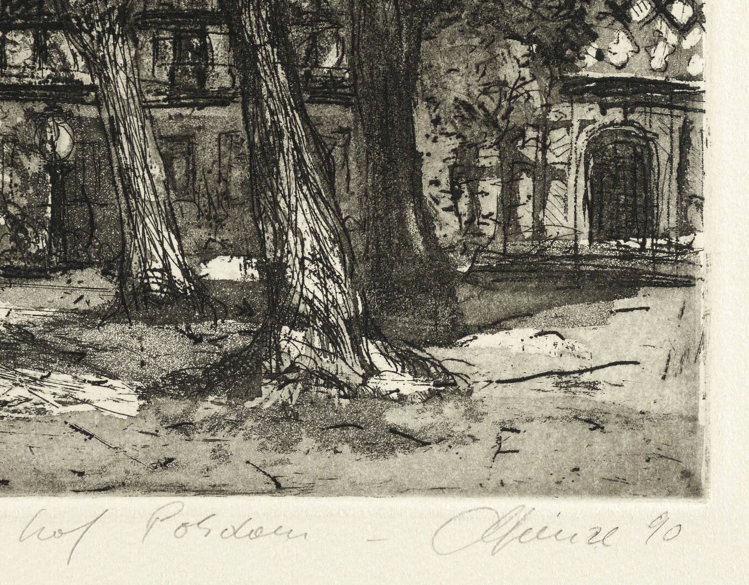 Christian Heinze (*1941 Dresden, lebt und arbeitet in Potsdam). Deutscher Maler und Grafiker. 1960-66 Studium der Malerei an der Hochschule der Bildenden Künste Dresden (HfBK). Seit 1966 freiberuflicher Maler und Grafiker in Potsdam. Ausstellungen im In- und Ausland z.B. 1987 in der Nationalgalerie Harare in Simbabwe und 1997 im Stadtarchiv Dresden. Spezialisierte sich auf die Radiertechniken, vor allem auf die von ihm ausgesprochen malerisch behandelte Aquatinta.