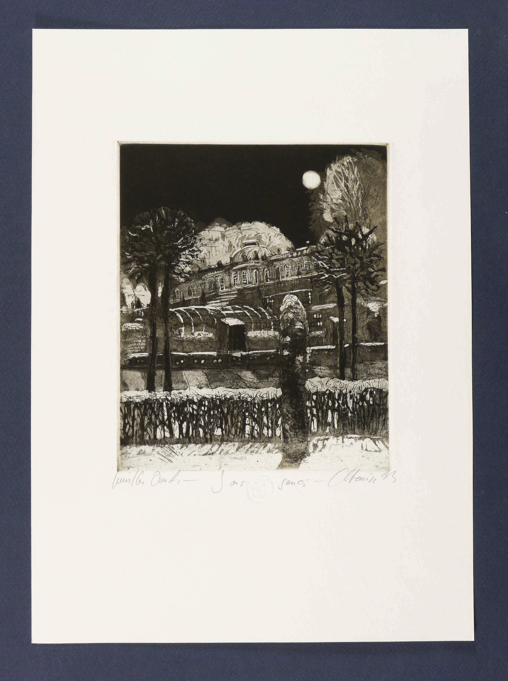 Christian Heinze (*1941 Dresden, lebt und arbeitet in Potsdam). Deutscher Maler und Grafiker. 1960-66 Studium der Malerei an der Hochschule der Bildenden Künste Dresden (HfBK). Seit 1966 freiberuflicher Maler und Grafiker in Potsdam. Ausstellungen im In- und Ausland z.B. 1987 in der Nationalgalerie Harare in Simbabwe und 1997 im Stadtarchiv Dresden. Spezialisierte sich auf die Radiertechniken, vor allem auf die von ihm ausgesprochen malerisch behandelte Aquatinta.
