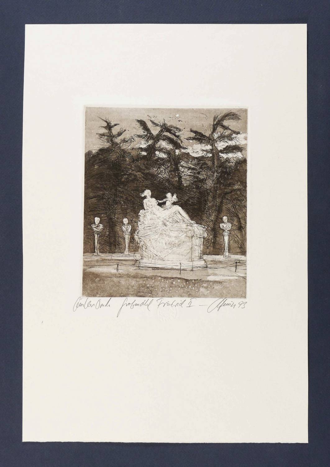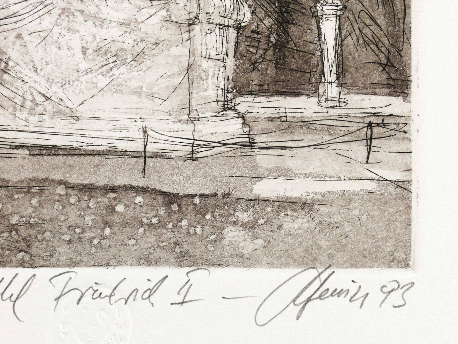 Rechts unten in Bleistift signiert und datiert. Links Auflagenbezeichnung. Mittig Titel. Dazu Trockenstempel des Künstlers. – Sehr guter Zustand.
