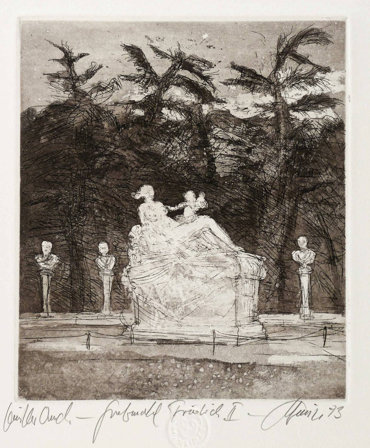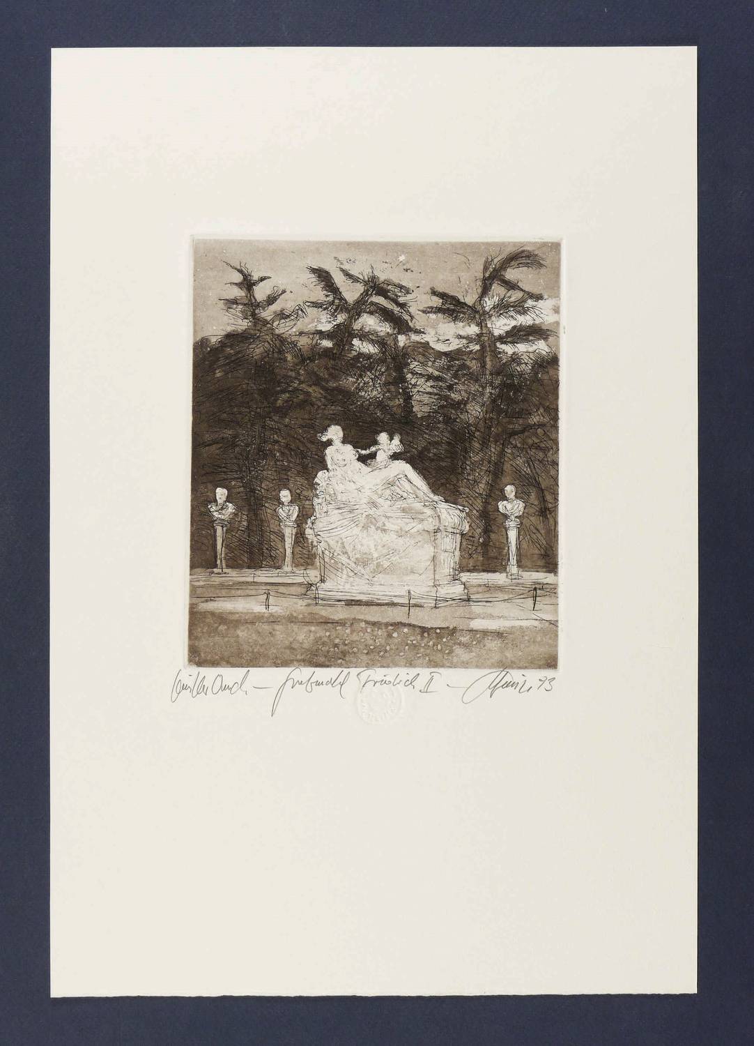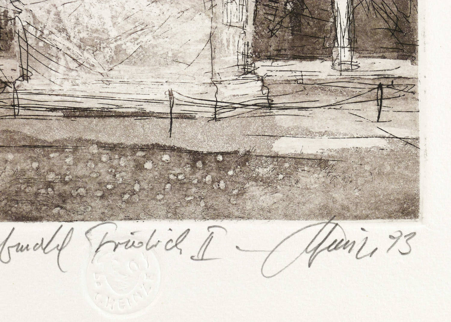Rechts unten in Bleistift signiert und datiert. Links Auflagenbezeichnung. Mittig Titel. Dazu Trockenstempel des Künstlers. – Sehr guter Zustand.