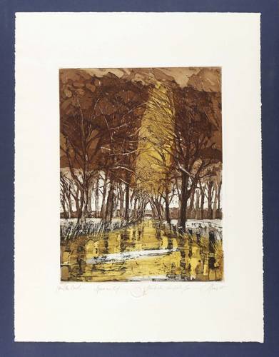 1995. Farbradierung / Aquatinta & Reservage, in Ocker, Braun & Schwarz, auf hellem Hahnemühle-Bütten. – Von Christian Heinze. – Unikate Farbvariante. – 40,4 x 30,7 cm (Darstellung / Platte), 61,5 x 46,5 cm (Blatt).
