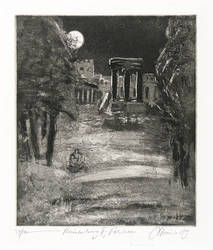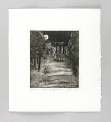 1989. Radierung / Aquatinta & Strichätzung, in Schwarz, auf gelbem Hahnemühle-Bütten. – Originale Künstlergrafik, von Christian Heinze. – Auflage Exemplar Nr. 24/100. – 20,6 x 17,6 cm (Darstellung / Platte), 38 x 29 cm (Blatt).