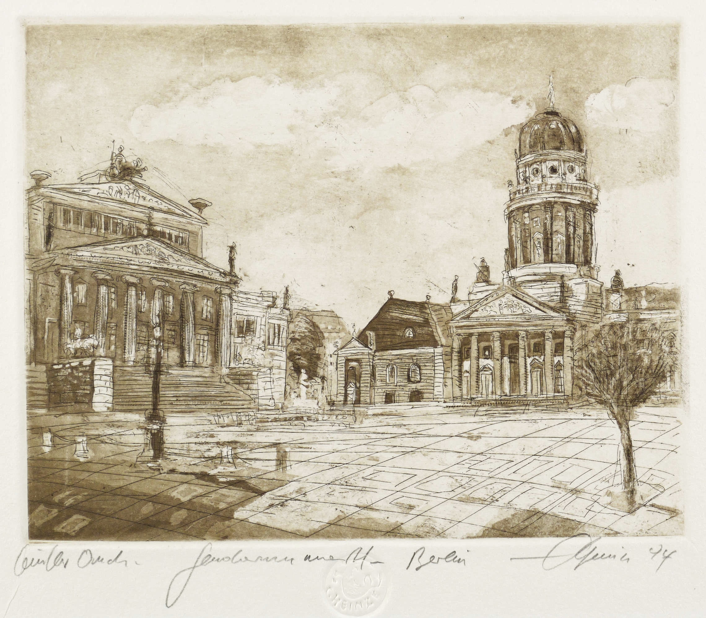 Christian Heinze (*1941 Dresden, lebt und arbeitet in Potsdam). Deutscher Maler und Grafiker. 1960-66 Studium der Malerei an der Hochschule der Bildenden Künste Dresden (HfBK). Seit 1966 freiberuflicher Maler und Grafiker in Potsdam. Ausstellungen im In- und Ausland z.B. 1987 in der Nationalgalerie Harare in Simbabwe und 1997 im Stadtarchiv Dresden. Spezialisierte sich auf die Radiertechniken, vor allem auf die von ihm ausgesprochen malerisch behandelte Aquatinta.