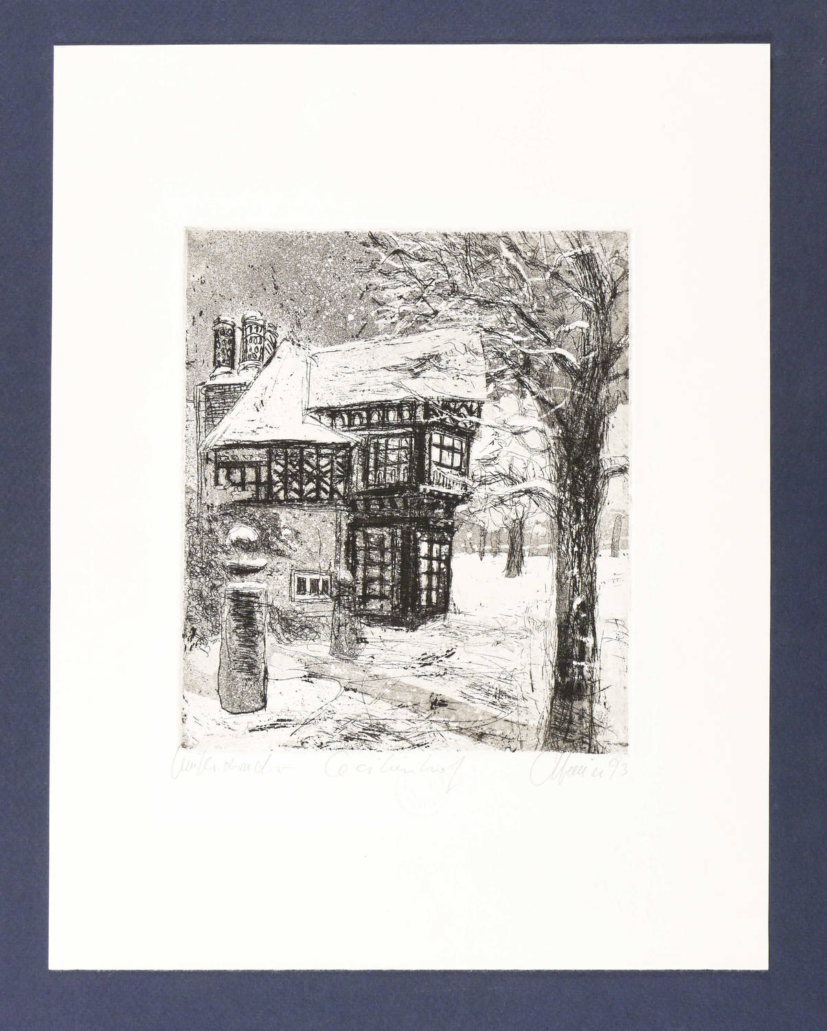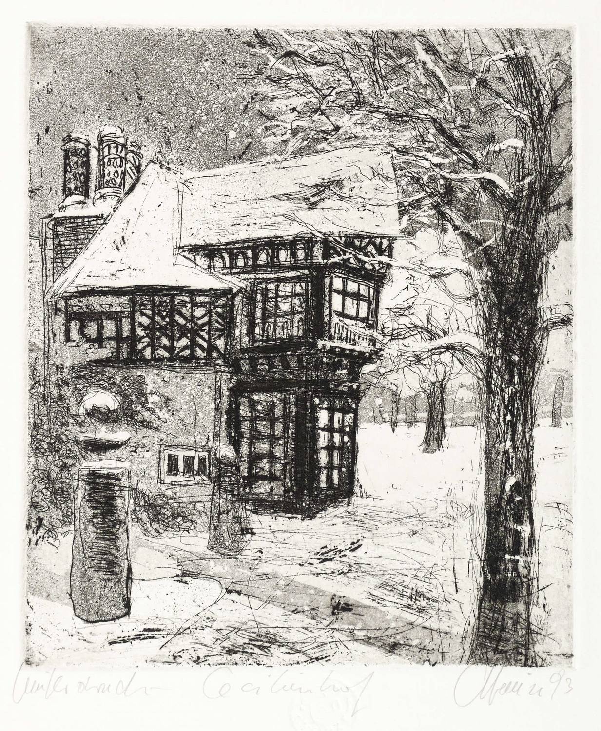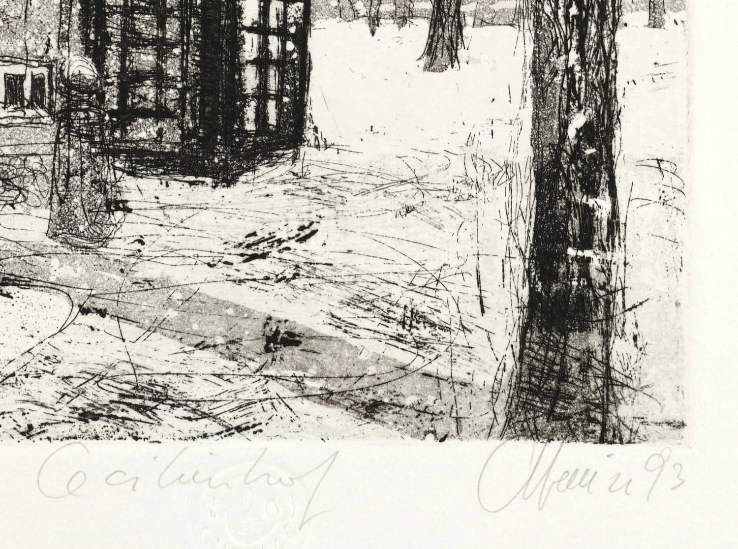1993. Radierung / Aquatinta & Strichätzung, in Schwarz, auf hellem Büttenkarton. – Originale Künstlergrafik, von Christian Heinze. – Künstlerexemplar (e.a.). – 19,6 x 16,8 cm (Darstellung / Platte), 35 x 27 cm (Blatt).