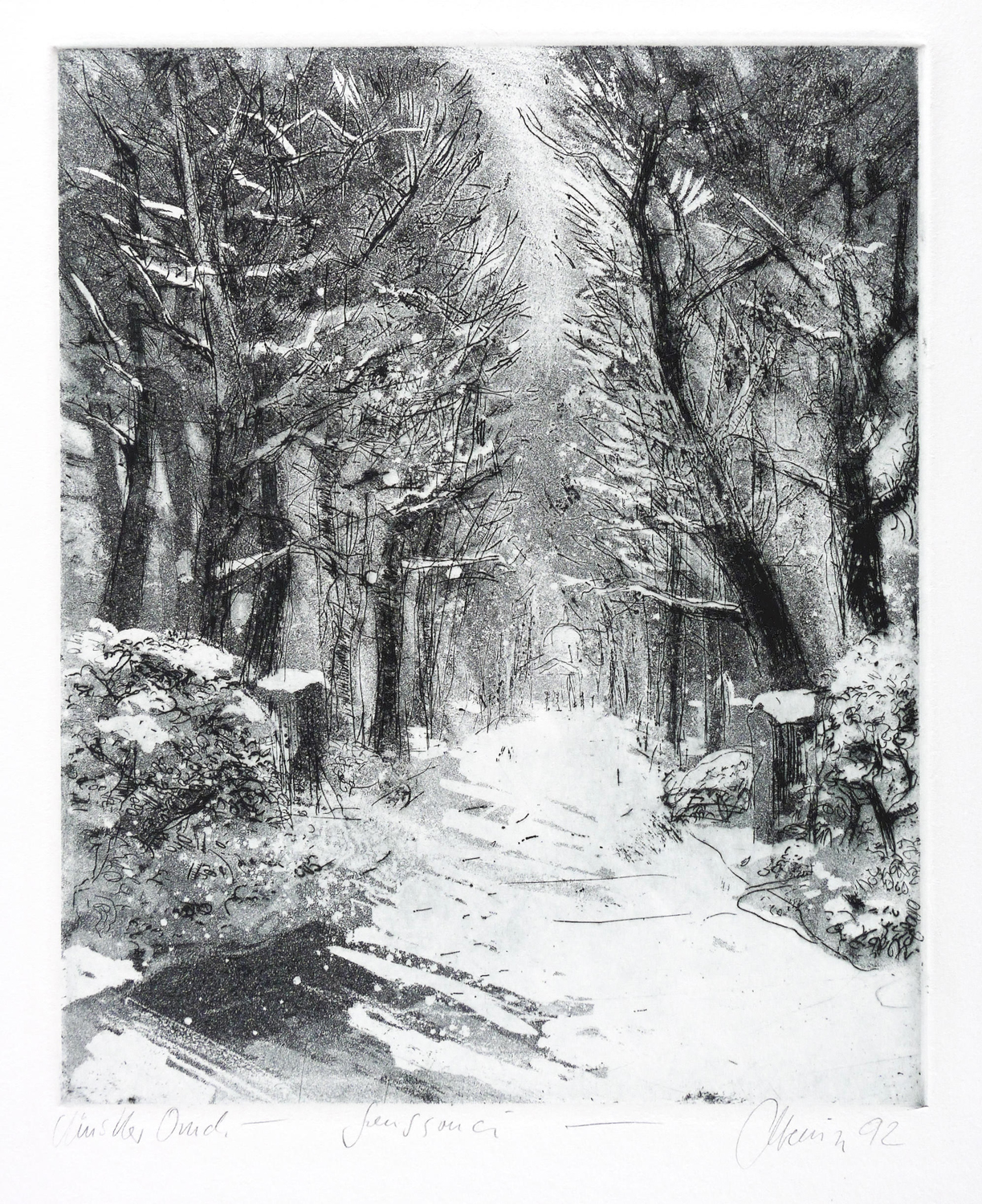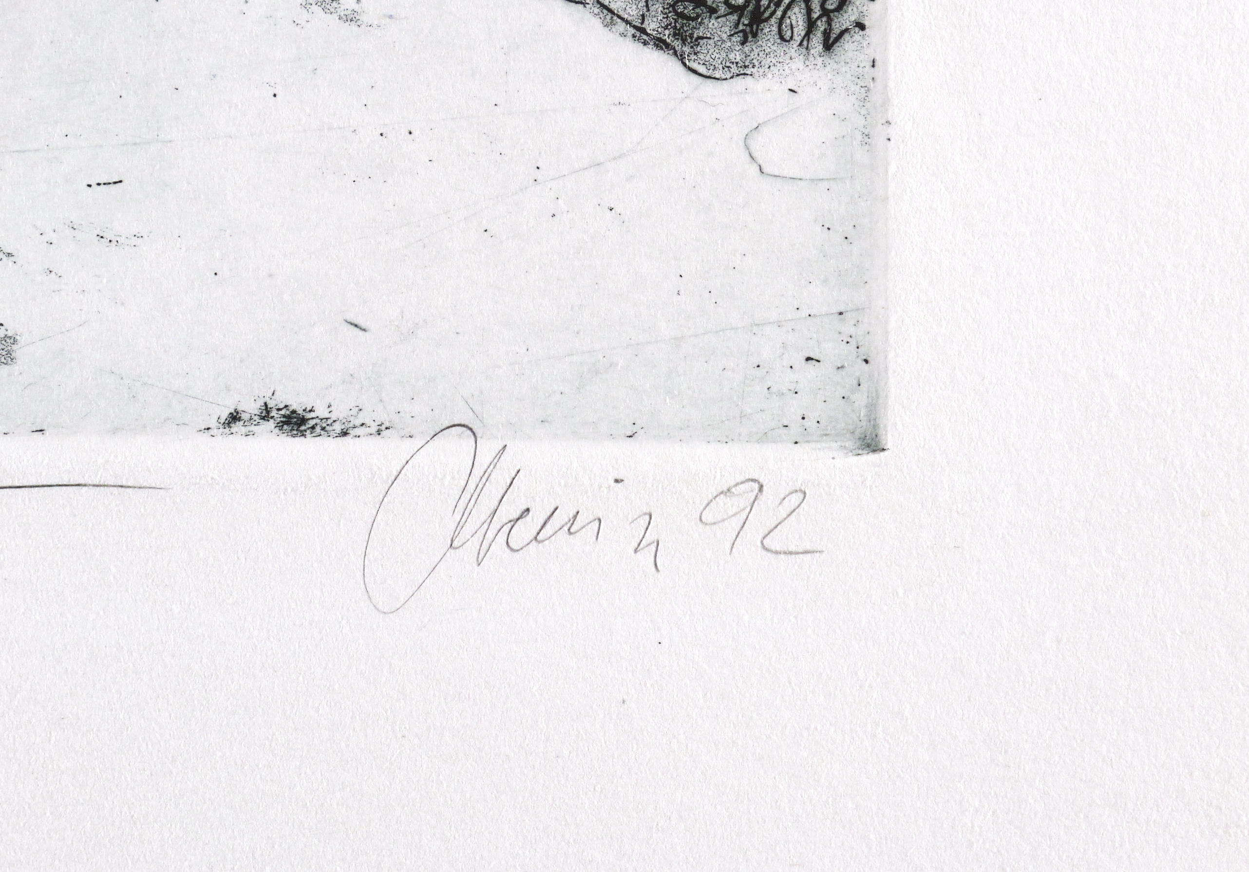 1992. Radierung / Aquatinta & Strichätzung, in Schwarz, auf weißem Büttenkarton. – Von Christian Heinze. – Künstlerexemplar (e.a.). – 24,2 x 19,7 cm (Darstellung / Platte), 35,5 x 27 cm (Blatt).