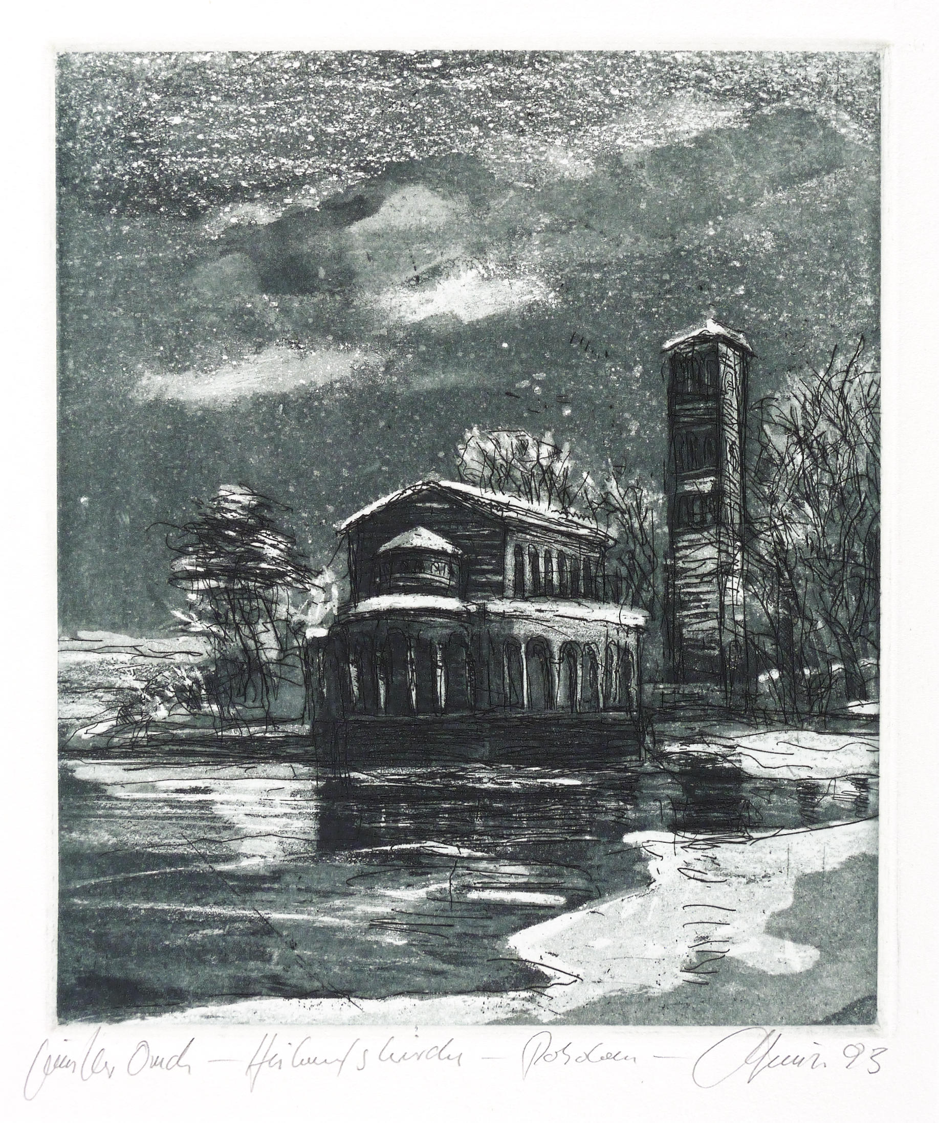 Christian Heinze (*1941 Dresden, lebt und arbeitet in Potsdam). Deutscher Maler und Grafiker. 1960-66 Studium der Malerei an der Hochschule der Bildenden Künste Dresden (HfBK). Seit 1966 freiberuflicher Maler und Grafiker in Potsdam. Ausstellungen im In- und Ausland z.B. 1987 in der Nationalgalerie Harare in Simbabwe und 1997 im Stadtarchiv Dresden. Spezialisierte sich auf die Radiertechniken, vor allem auf die von ihm ausgesprochen malerisch behandelte Aquatinta.
