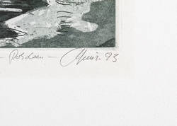 Rechts unten in Bleistift signiert und datiert. Links Auflagenbezeichnung. Mittig Titel. – Blatt um die Darstellung schwach lichtrandig. Sonst guter Zustand.