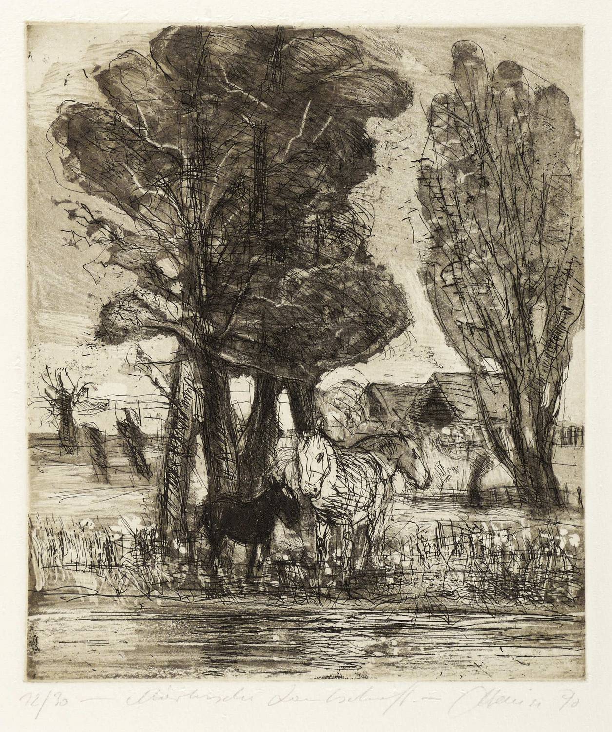 Rechts unten in Bleistift signiert und datiert. Links Auflagenbezeichnung. Mittig bezeichnet: ″Märkische Landschaft″. – Breitrandiges Exemplar. Sehr guter Zustand.