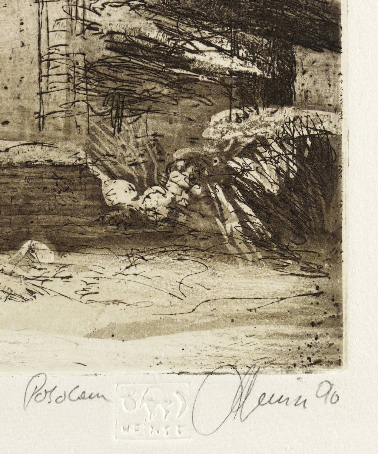 Rechts unten in Bleistift signiert und datiert. Links Auflagenbezeichnung. Mittig Titel. Dazu Trockenstempel des Künstlers. – Sehr guter Zustand.