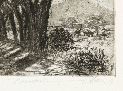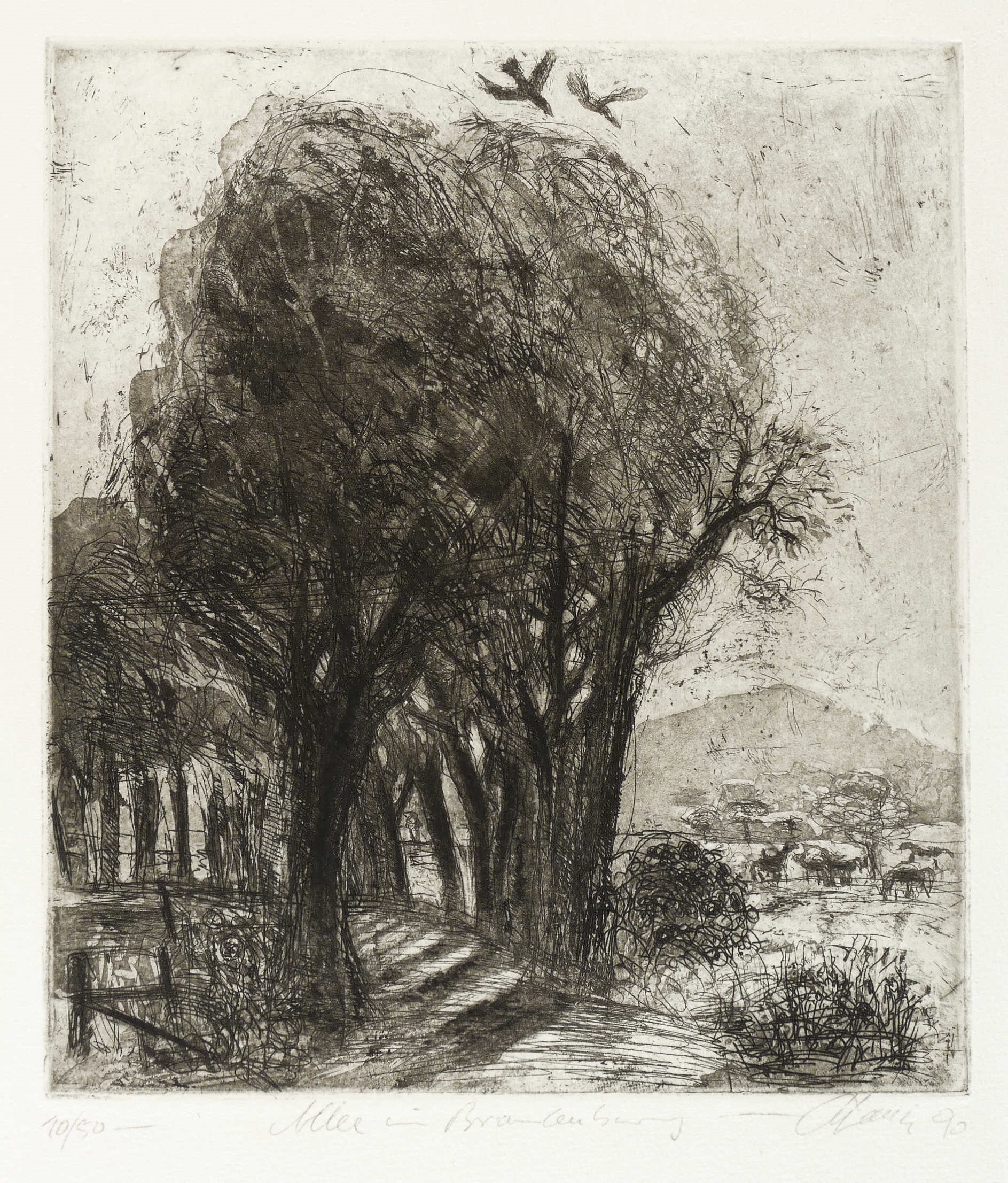 1990. Radierung / Aquatinta & Strichätzung, in Schwarz, auf hellem Hahnemühle-Bütten. – Von Christian Heinze. – Auflage Exemplar Nr. 10/50. – 20,6 x 18,1 cm (Darstellung / Platte), 38 x 29 cm (Blatt).
