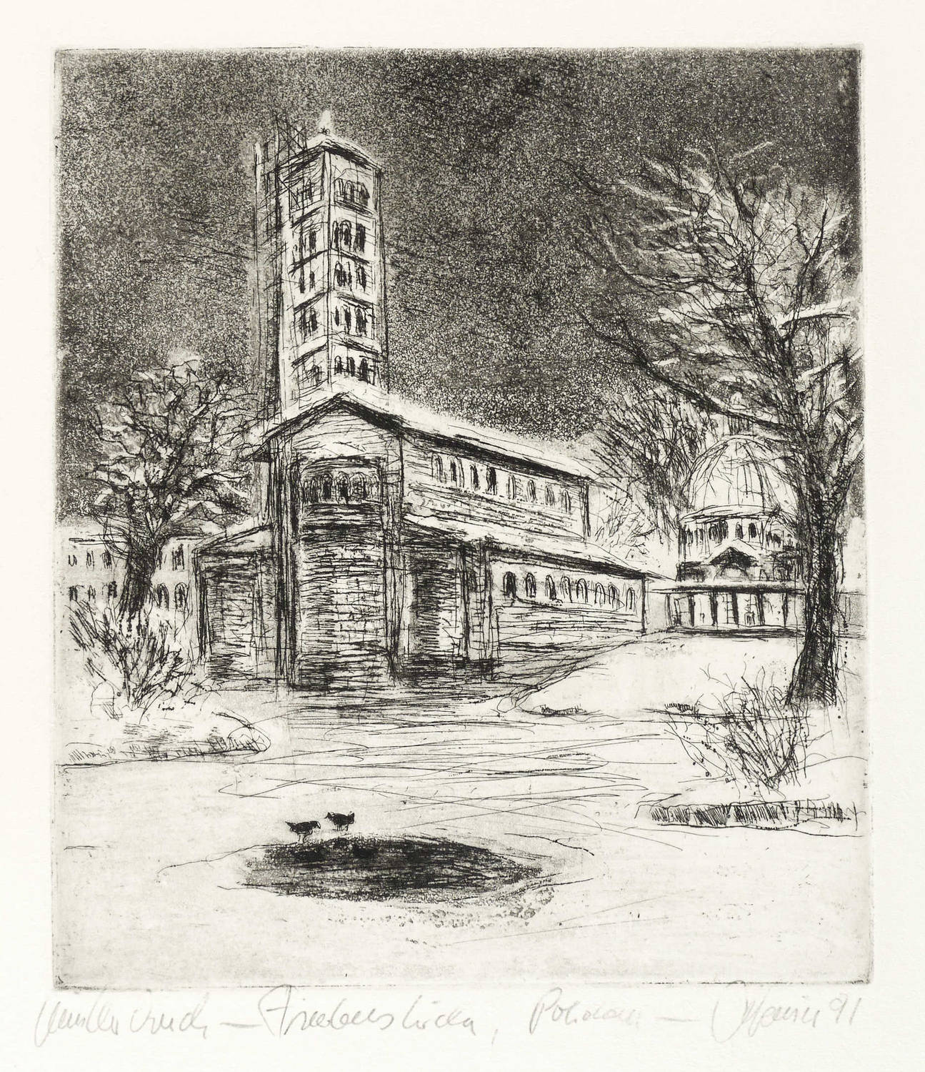 Christian Heinze (*1941 Dresden, lebt und arbeitet in Potsdam). Deutscher Maler und Grafiker. 1960-66 Studium der Malerei an der Hochschule der Bildenden Künste Dresden (HfBK). Seit 1966 freiberuflicher Maler und Grafiker in Potsdam. Ausstellungen im In- und Ausland z.B. 1987 in der Nationalgalerie Harare in Simbabwe und 1997 im Stadtarchiv Dresden. Spezialisierte sich auf die Radiertechniken, vor allem auf die von ihm ausgesprochen malerisch behandelte Aquatinta.
