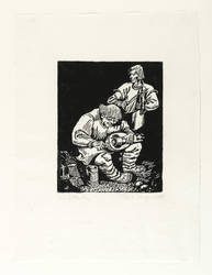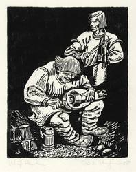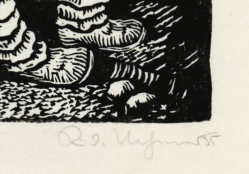 1935. Holzschnitt, in Schwarz, auf rauem weißlichem Japanbütten. – Originale Künstlergrafik, von Rudolf Nehmer. – 23,5 x 18,9 cm (Darstellung / Druckstock), 45 x 34 cm (Blatt).