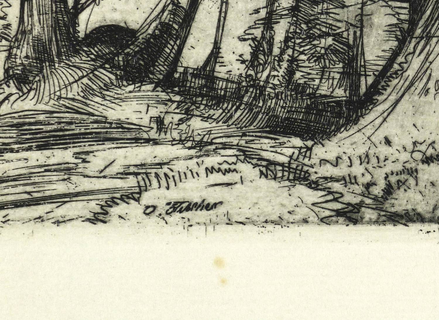 1918/1919. Radierung / Strichätzung & Aquatinta, in Schwarz, mit Plattenton, auf hellgelbem Büttenpapier. – Originale Künstlergrafik, von Otto Fischer. – 9,7 x 14,6 cm (Darstellung / Platte), 28 x 22 cm (Blatt).