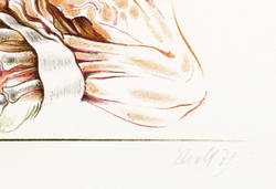 1979. Farblithografie / Kreidelithografie, in 5 Farben, auf glattem weißem Karton. – Originale Künstlergrafik, von Rainer Herold. – Auflage Exemplar Nr. 17/30. – 27,8 x 34,9 cm (Darstellung / Druckbild), 34 x 48 cm (Blatt).