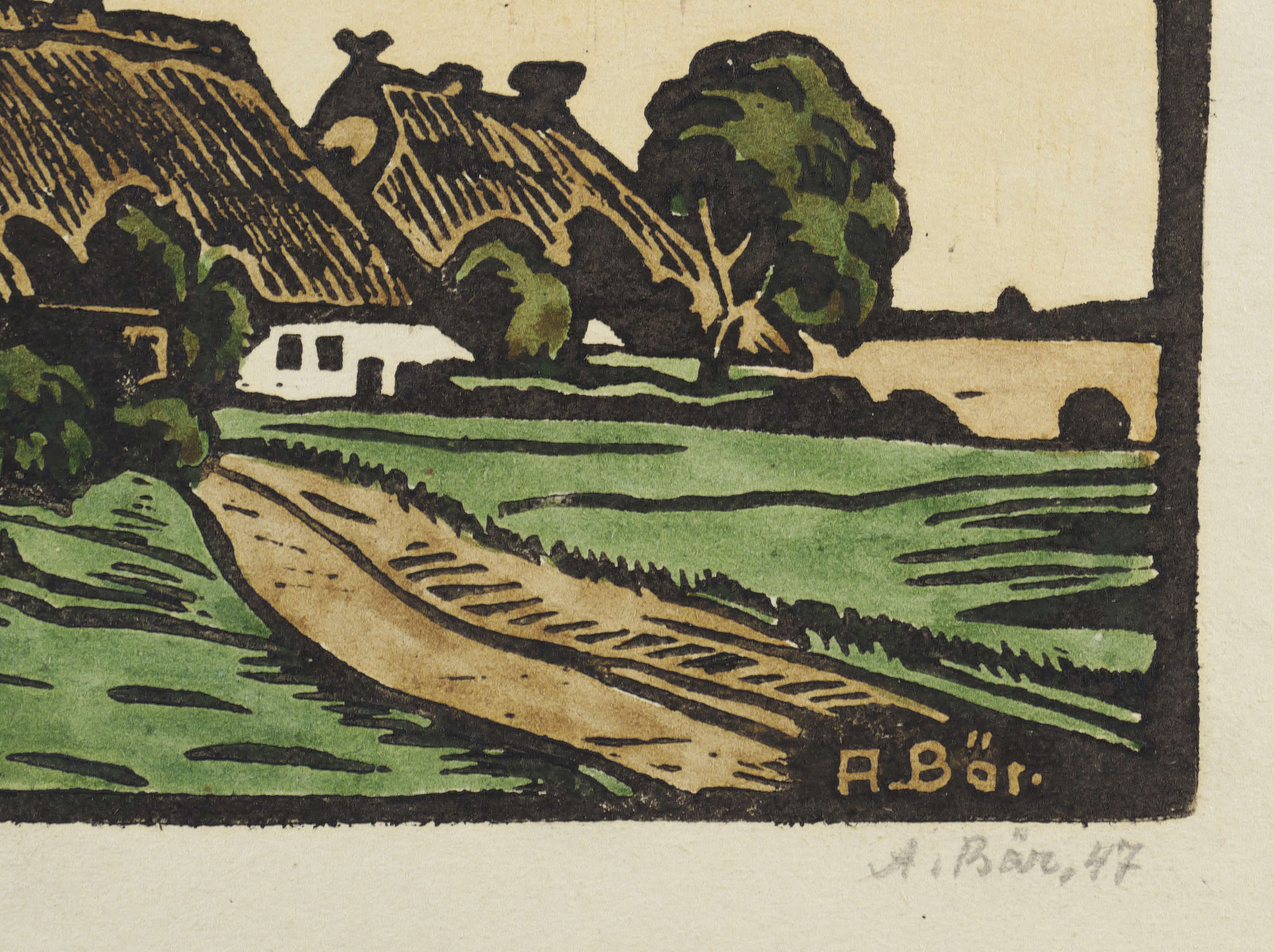 Rechts unten in Bleistift signiert und datiert: ″A. Bär 47.″ Links Titel. Im Druckstock rechts unten nochmals Signatur. – Papier leicht gebräunt. Insgesamt sehr guter Erhaltungszustand.