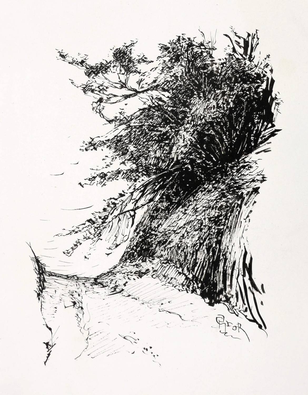 In der Darstellung rechts unten in Feder und Tusche signiert: ″PGroß″. – Aus einem teilweise datierten Zeichnungs- Konvolut, dass 1920 in verschiedenen Badeorten entlang der Ostseeküste entstand. – Unbeschnittenes Exemplar. Papier mit unscheinbaren Altersspuren. Die Blattkanten bsiweilen minimal bestoßen. Verso am oberen Rand ältere Montagereste. Insgesamt noch sehr guter Zustand.