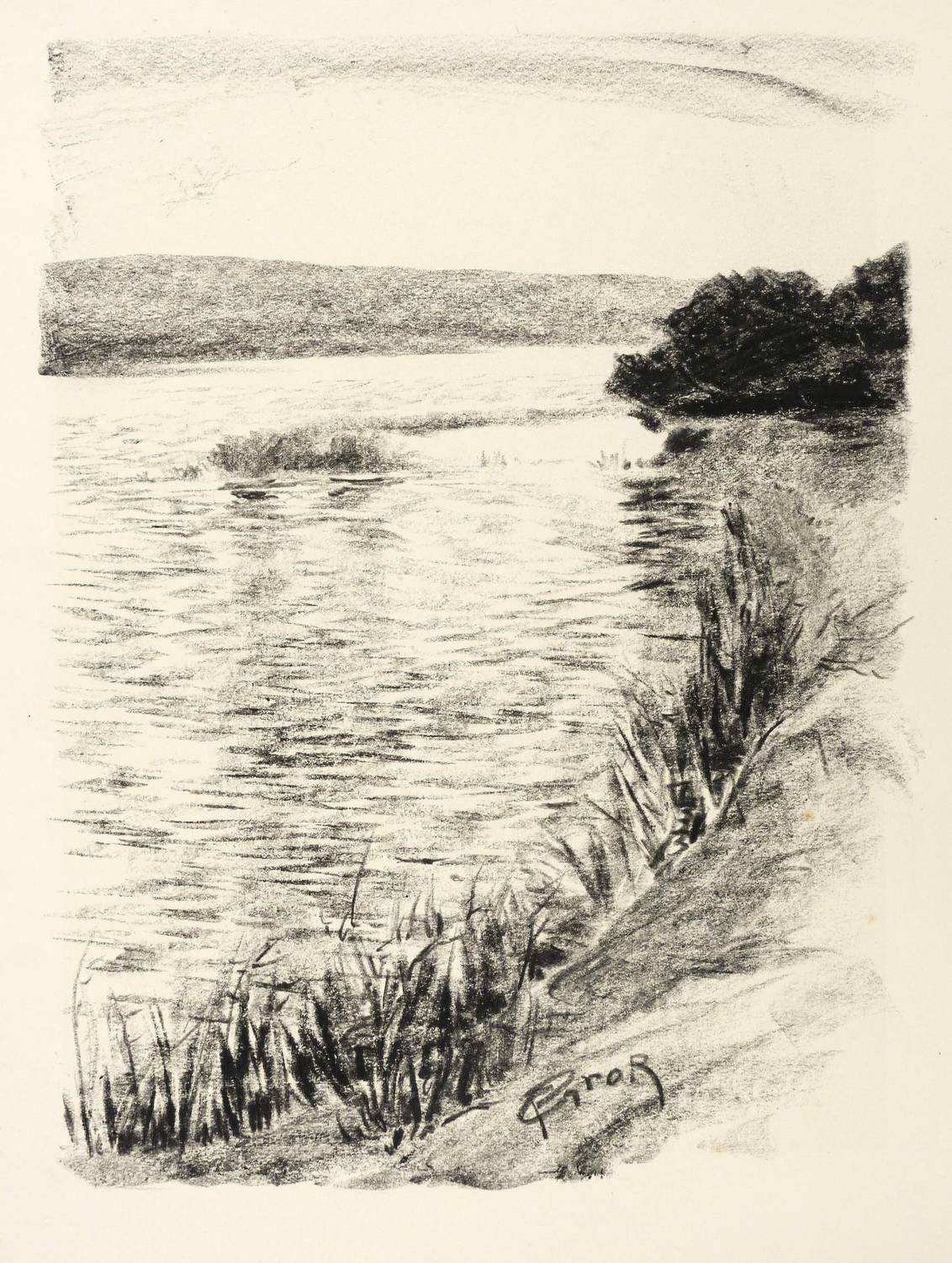 In der Darstellung unten in schwarzer Kreide signiert: ″PGroß″. – Papier msauber und frisch wirkend. Tadellos erhalten. Sehr guter Zustand.