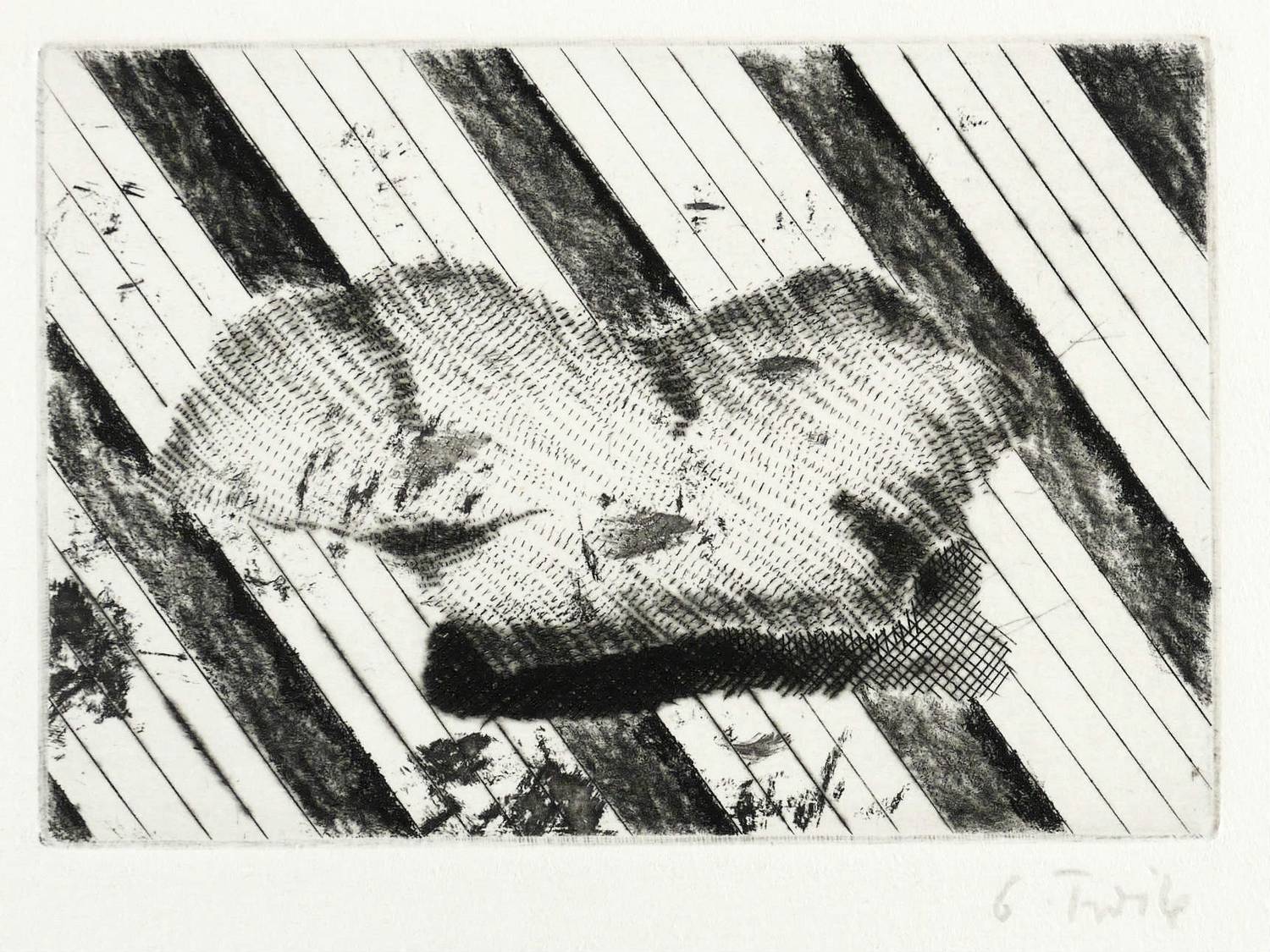 1978. Radierung / Strichätzung, Aquatinta & Roulette, in Schwarz, auf Hahnemühle-Bütten. – Originale Künstlergrafik, von Gero Troike. – Auflage Exemplar Nr. 1/32. – 9,0 x 12,9 cm (Darstellung / Platte), 23 x 31 cm (Blatt).
