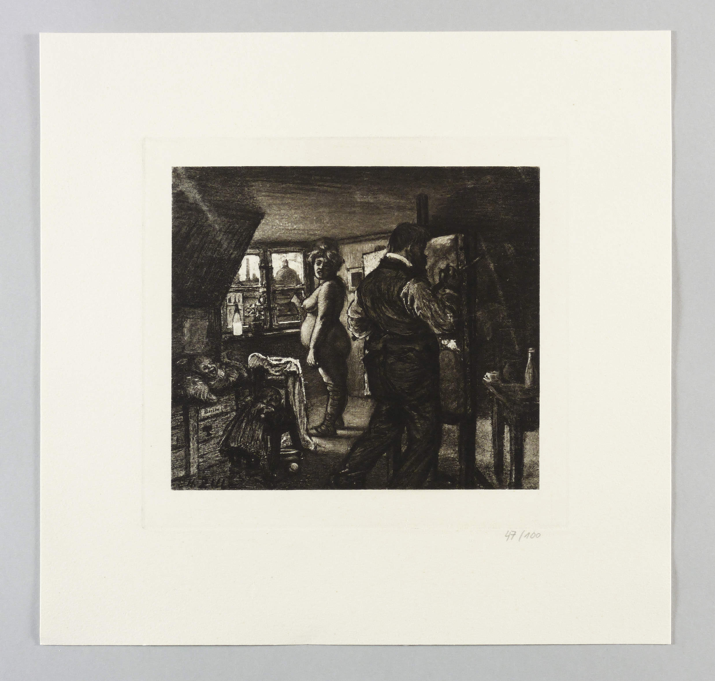 1901. Heliogravure / Heliogravüre, mit Roulette, in Schwarz, auf weißem Kupferdruckbütten. – Originale Künstlergrafik, von Heinrich Zille. – Auflage Exemplar Nr. 47/100. – 17,6 x 20,0 cm (Darstellung), 21,3 x 23,1 cm (Platte), 34 x 35 cm (Blatt).