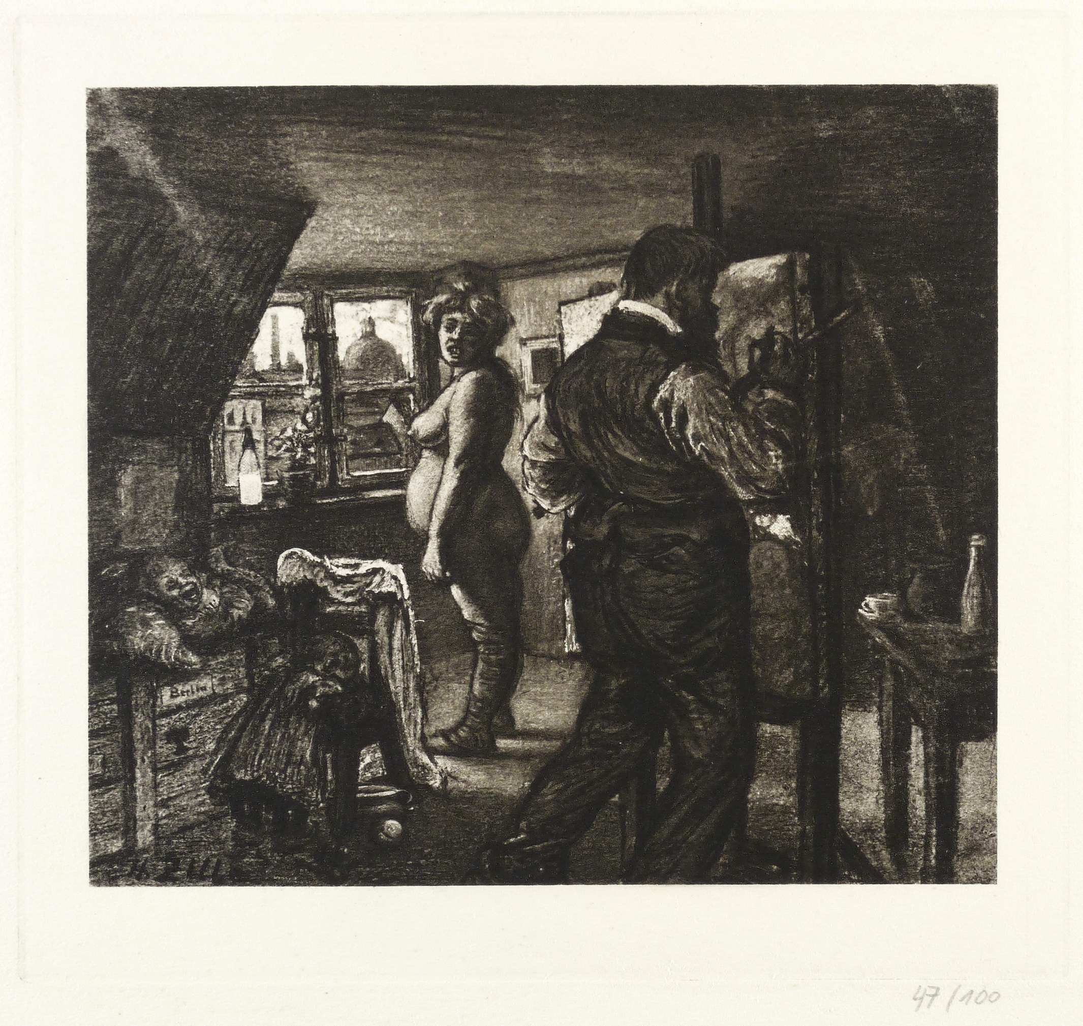 Rosenbach 26 d (von f). – Aus: Heinrich Zille, Zehn Original-Graphiken aus dem Nachlass (Hannover: Fackelträger-Verlag 1964). – Nicht handsigniert. Rechts unten in Bleistift Auflagenbezeichnung. – Posthumer Abzug von der im Nachlass erhaltenen originalen Platte für die 1964 in einer Auflage von 100 Exemplaren im Fackelträger-Verlag Hannover erschienene Mappe mit zehn Zille-Drucken. – Tadellos. Sehr guter Zustand.