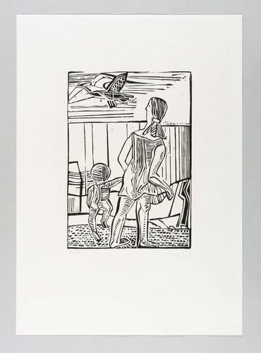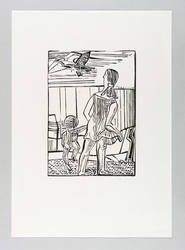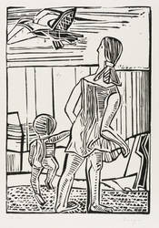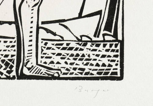 1969. Holzschnitt, in Schwarz, auf rauem weißlichem Japanpapier. – Originale Künstlergrafik, von Dietrich Burger. – Auflage Exemplar Nr. 16/30. – 26,6 x 18,7 cm (Darstellung), 48 x 34 cm (Blatt).