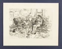 1975. Radierung / Kaltnadel, in Schwarz, auf hartem Maschinenbütten. – Originale Künstlergrafik, von Christine Wahl. – 23,0 x 32,8 cm (Darstellung / Platte), 32,5 x 41,5 cm (Blatt).