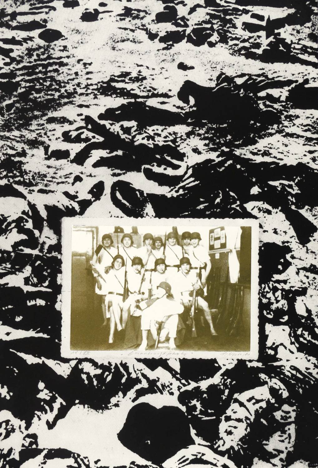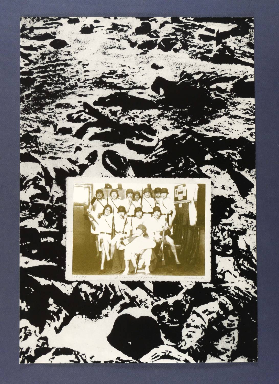 1981. Farbsiebdruck / Farbserigrafie, nach Fotomontage, in 2 Farben, auf weißem Karton. – Von Wolfgang Petrovsky. – Auflage Nr. 18/20. – 47,8 x 32,6 cm (Darstellung / Blatt).