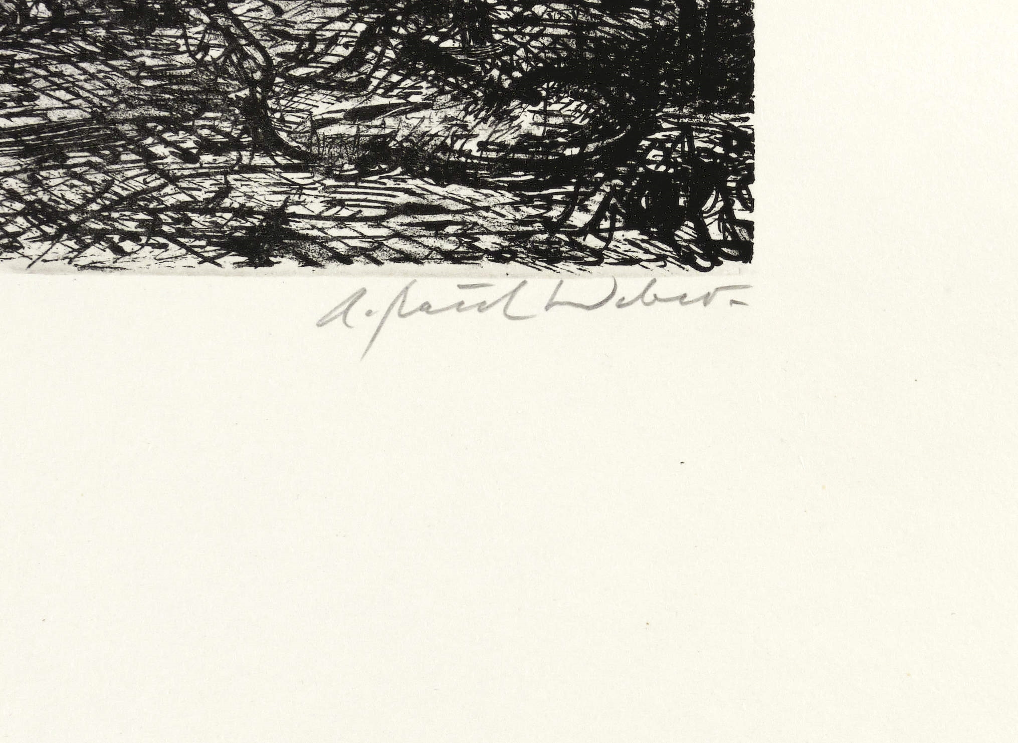 Arp 109. – Rechts unten in Bleistift signiert: ″A. Paul Weber.″ Links unten in der Tonplatte Stempel des Künstlers in Rot. In der Blattecke rechts unten Wasserzeichen mit Künstler-Signet. – Ohne Mangel. Sehr guter Zustand.