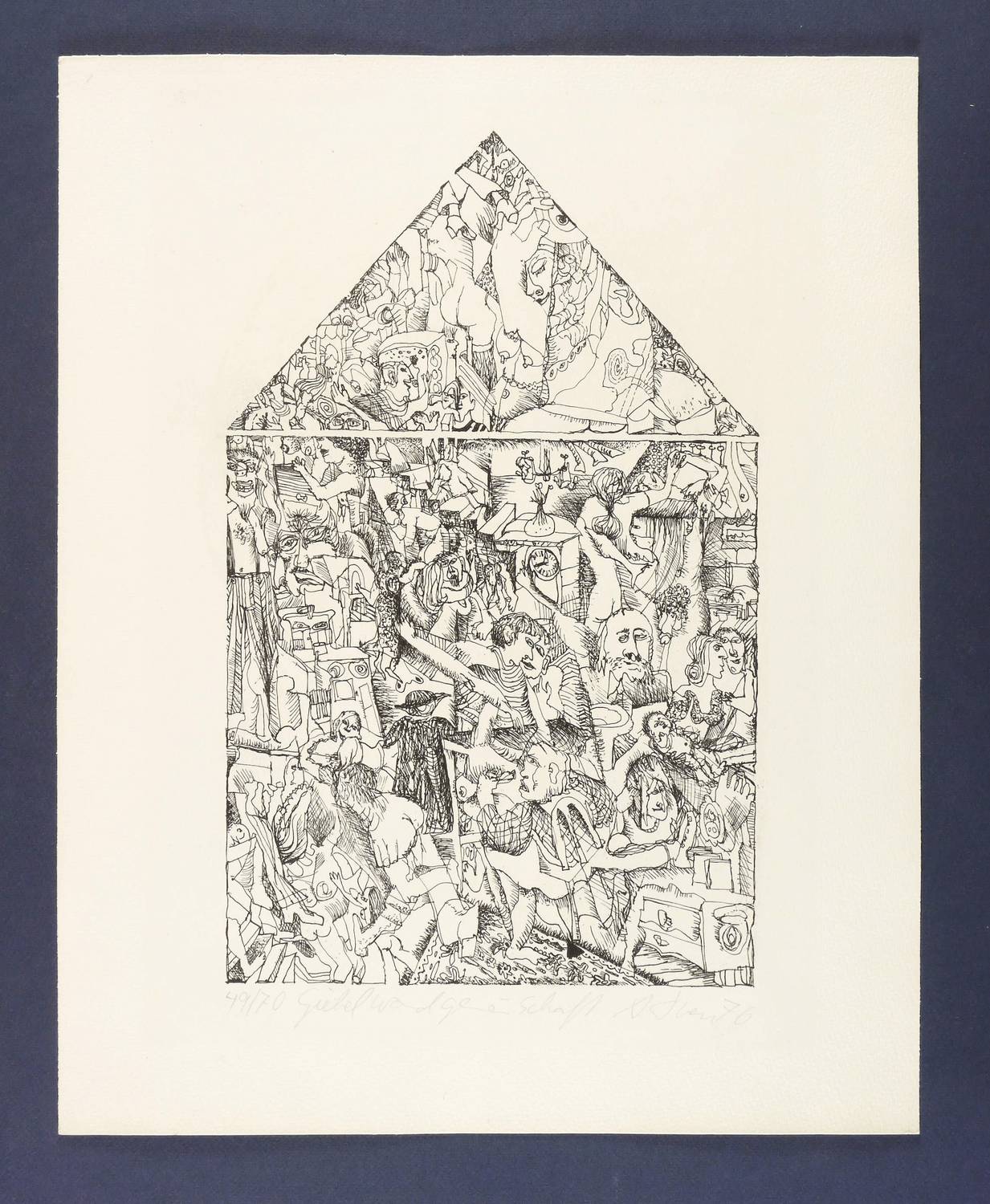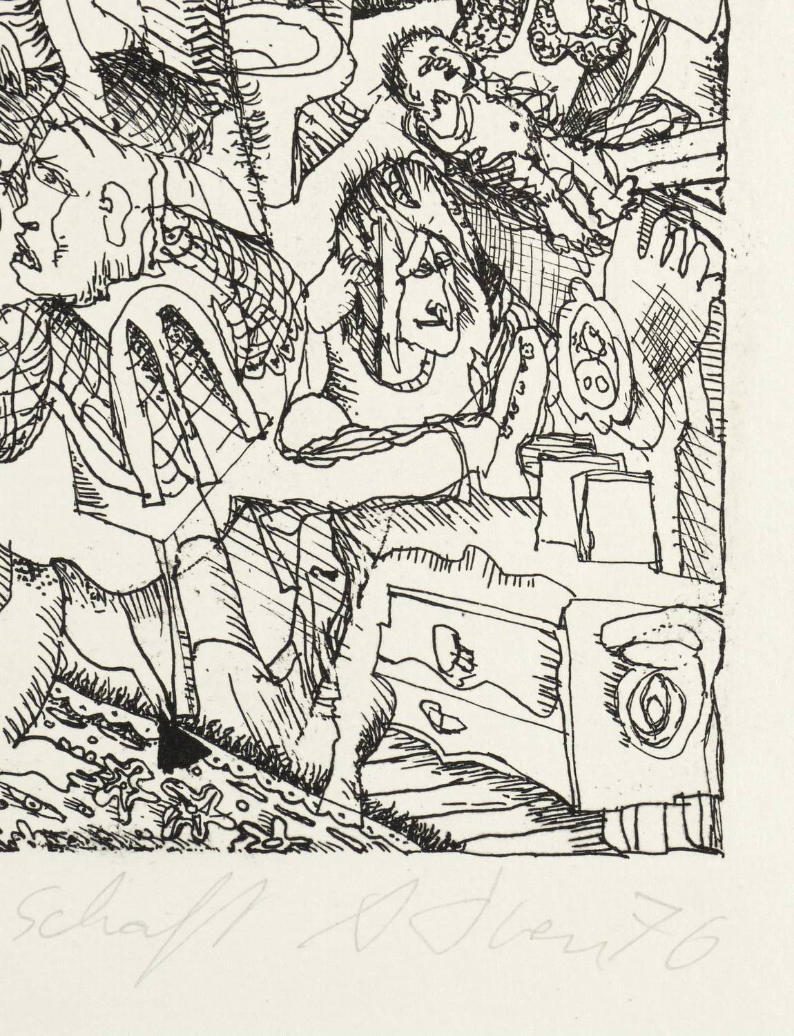 Aus: Falko Behrendt u.a., Imagination Format (Dresden: eikon Grafik-Presse 1976). – Rechts unten in Bleistift signiert und datiert. Links Auflagenbezeichnung und Titel. – Originalrandiges Exemplar. Minimale Lagerspuren. Guter Zustand.