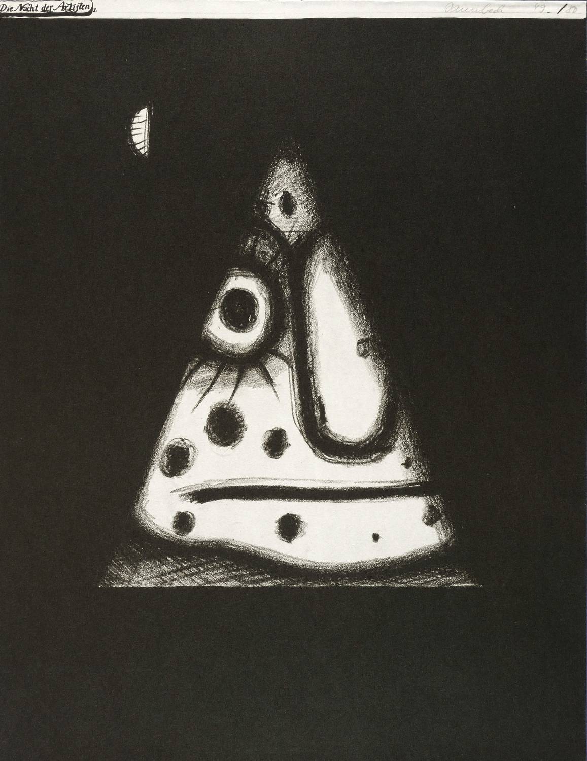 1976. Lithografie / Kreide- & Pinsellithografie, in Schwarz, auf rauem weißem Maschinenbütten. – Originale Künstlergrafik, von Lutz Dammbeck. – Auflage Exemplar Nr. 49/80. – 49,3 x 37,9 cm (Darstellung / Blatt).