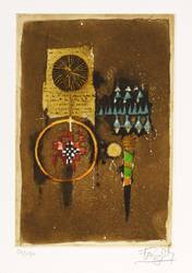 1982. Farbradierung / Aquatinta, in 8 Farben, auf festem weißem Velinkarton. – Originale Künstlergrafik, von Johnny Friedländer. – Auflage Exemplar Nr. 97/130. – 16,1 x 11,0 cm (Darstellung / Platte), 39 x 29 cm (Blatt).