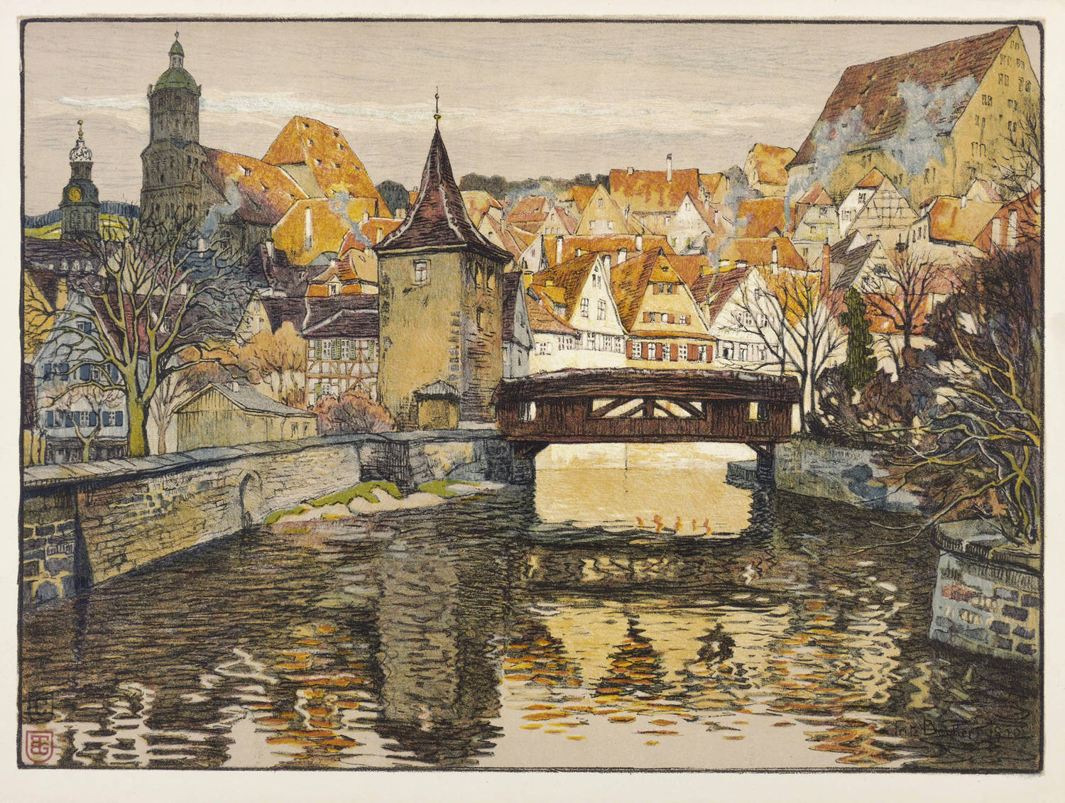 Beckert, Fritz. – „Schwäbisch Hall. Altstadt mit Rotem Steg”.