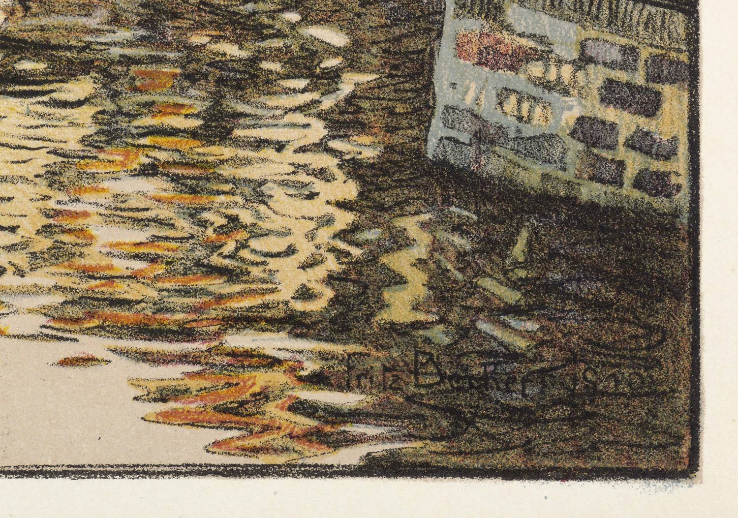 1910. Farblithografie / Kreidelithografie, in 8 Farben, auf glattem Karton. – Originale Künstlergrafik, von Fritz Beckert. – 30,2 x 41,0 cm (Darstellung / Einfassungslinie), 33 x 44 cm (Blatt).