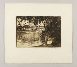 Um 1920. Radierung / Strichätzung, mit Plattenton, in Schwarzbraun, auf Kupferdruckkarton. – Originale Künstlergrafik, von Georg Jahn. – 16,5 x 23,2 cm (Darstellung / Platte), 32 x 36 cm (Blatt).