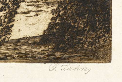 Georg Jahn (1869 Meißen - 1940 Loschwitz). Deutscher Maler und Grafiker. 1883-88 Porzellanmaler in der Porzellanmanufaktur Meißen. 1888-90 Stipendiat an der Dresdner Kunstakademie bei Leon Pohle. 1891/92 Studium an der Großherzoglich Sächsischen Kunstschule in Weimar bei Max Thedy. Aufenthalte in Berlin, Leipzig und München. Ab 1902 Mitglied des Vereins Bildender Künstler Dresden. Freundschaft mit dem Künstler Max Pietschmann, der ihn in die Radierkunst einführte, die Jahn in den kommenden Jahren perfektionierte. Er schuf über 300 Radierungen.