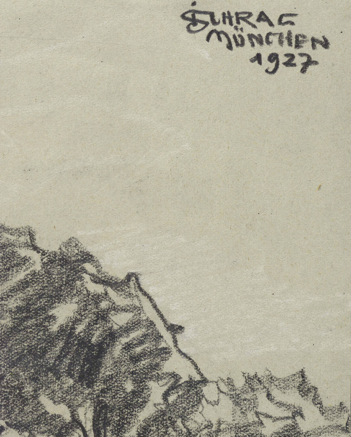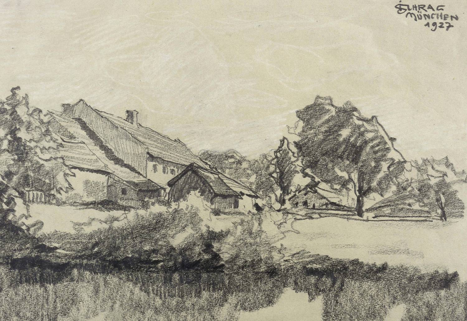 1927. Zeichnung / Graphitzeichnung, in weißer Kreide gehöht, auf hellgrauem Papier. – Originale Künstlergrafik, von Julius Schrag. – Unikat. – 18,7 x 27,0 cm (Darstellung / Blatt).