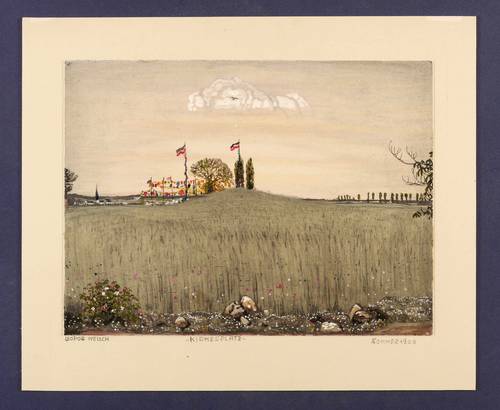 Auf deM Trägerkarton links unten in Bleistift signiert: ″LEOPOLD IUELICH″. Rechts Titel und Jahr: ″KIRMESPLATZ / SOMMER 1908″. – Original vom Künstler auf Trägerkarton gesetzt. Tadellos erhalten. Sehr guter Zustand.