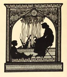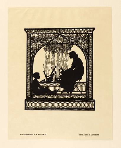 Aus: Cecile Leo, Schattenschnitte (München: Kunstwart - Georg D.W. Callwey 1914). – Rechts unten typografisch bezeichnet: ″CECILE LEO: KAMINFEUER″. – Tadellos. Original im Passepartout montiert. Sehr guter Zustand.