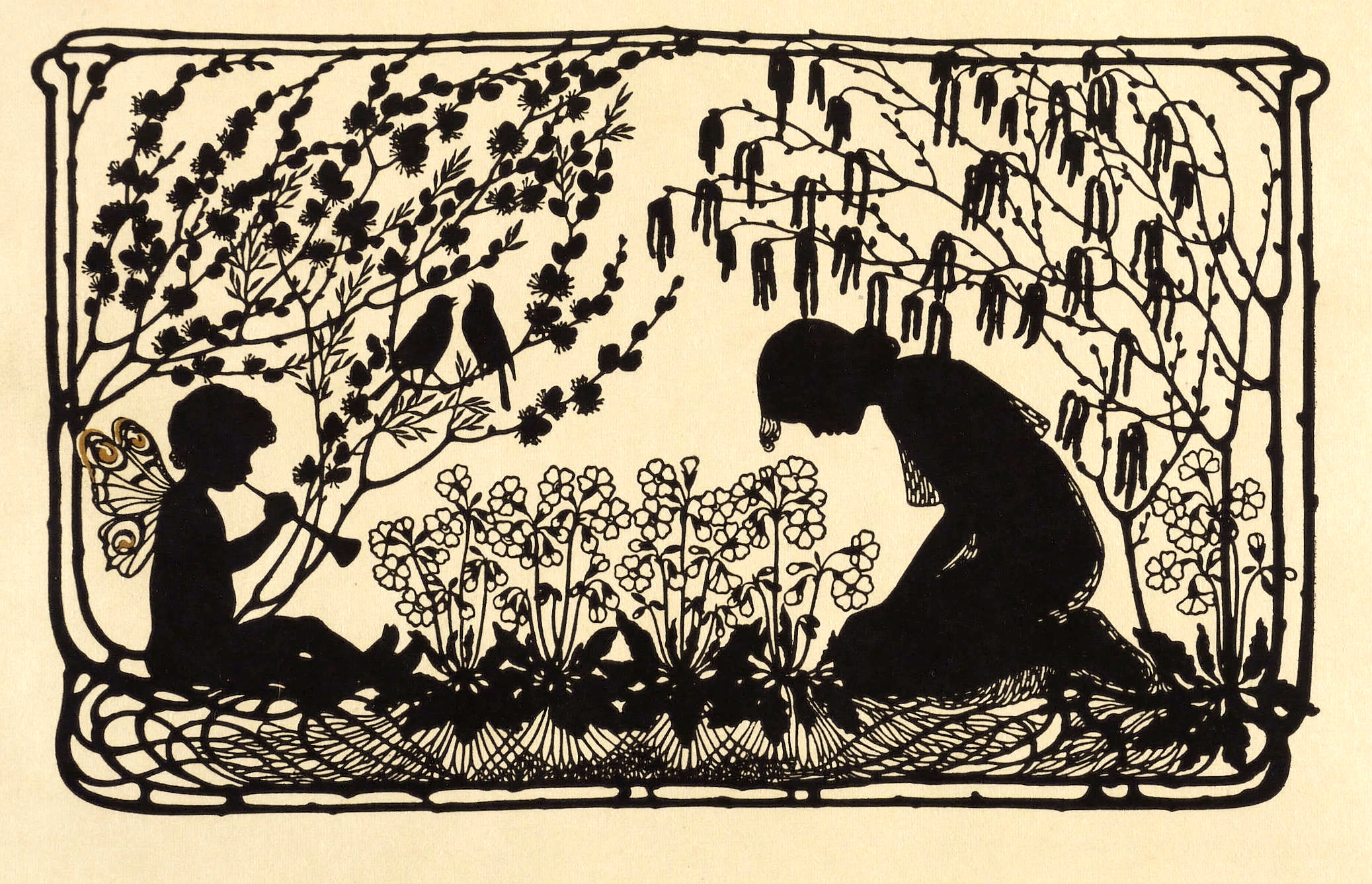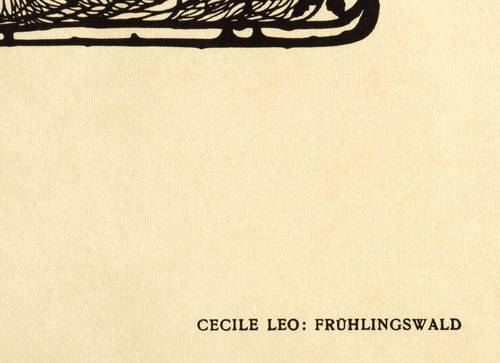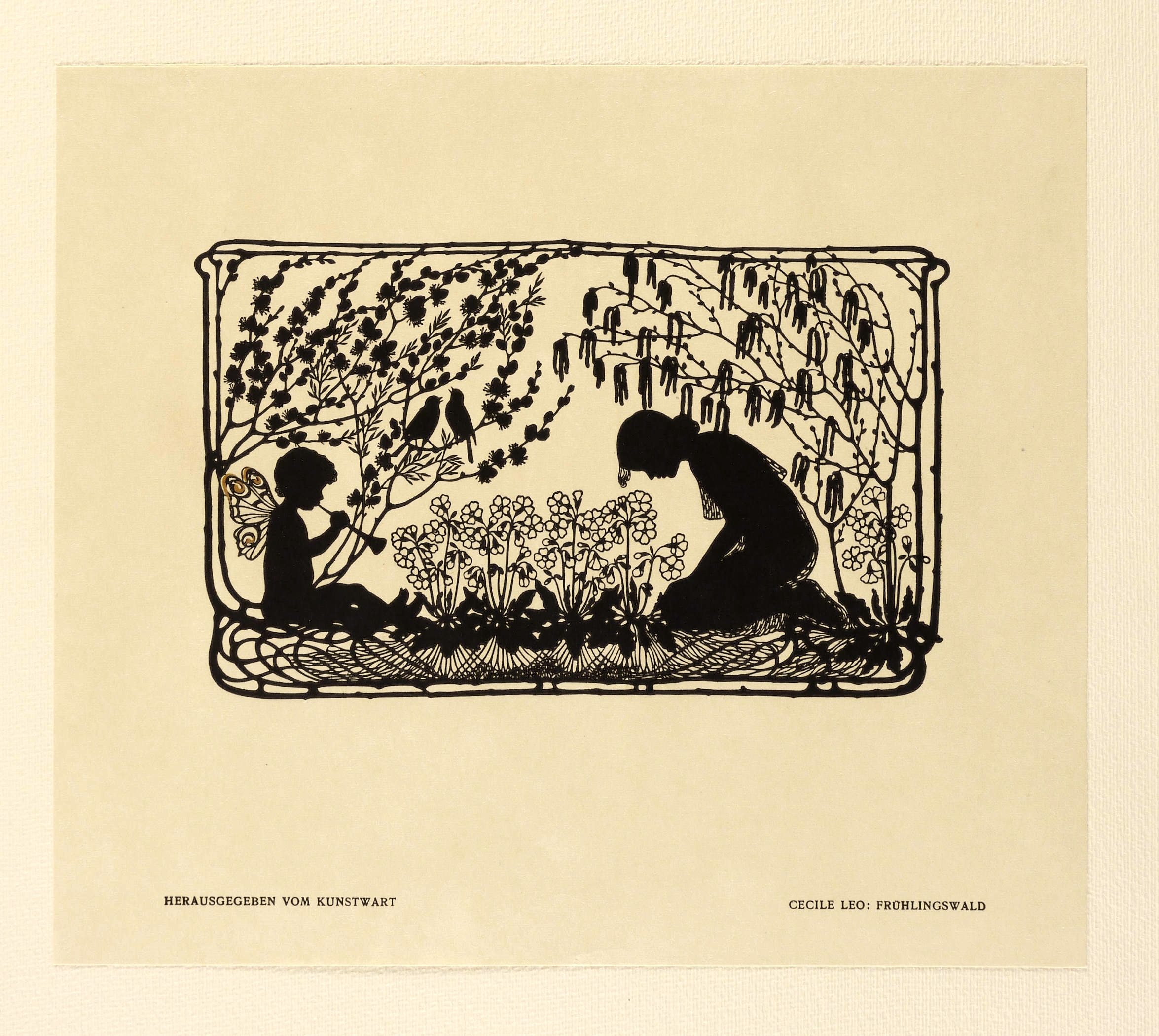 Aus: Cecile Leo, Schattenschnitte (München: Kunstwart - Georg D.W. Callwey 1914). – Rechts unten typografisch bezeichnet: ″CECILE LEO: FRÜHLINGSWALD″. – Tadellos. Sehr guter Zustand.