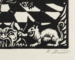 1920. Holzschnitt, in Schwarz, auf leichtem gelblichem Velin. – Originale Künstlergrafik, von Karel Němec. – 20,9 x 14,1 cm (Darstellung / Druckstock), 25,5 x 20,5 cm (Blatt).